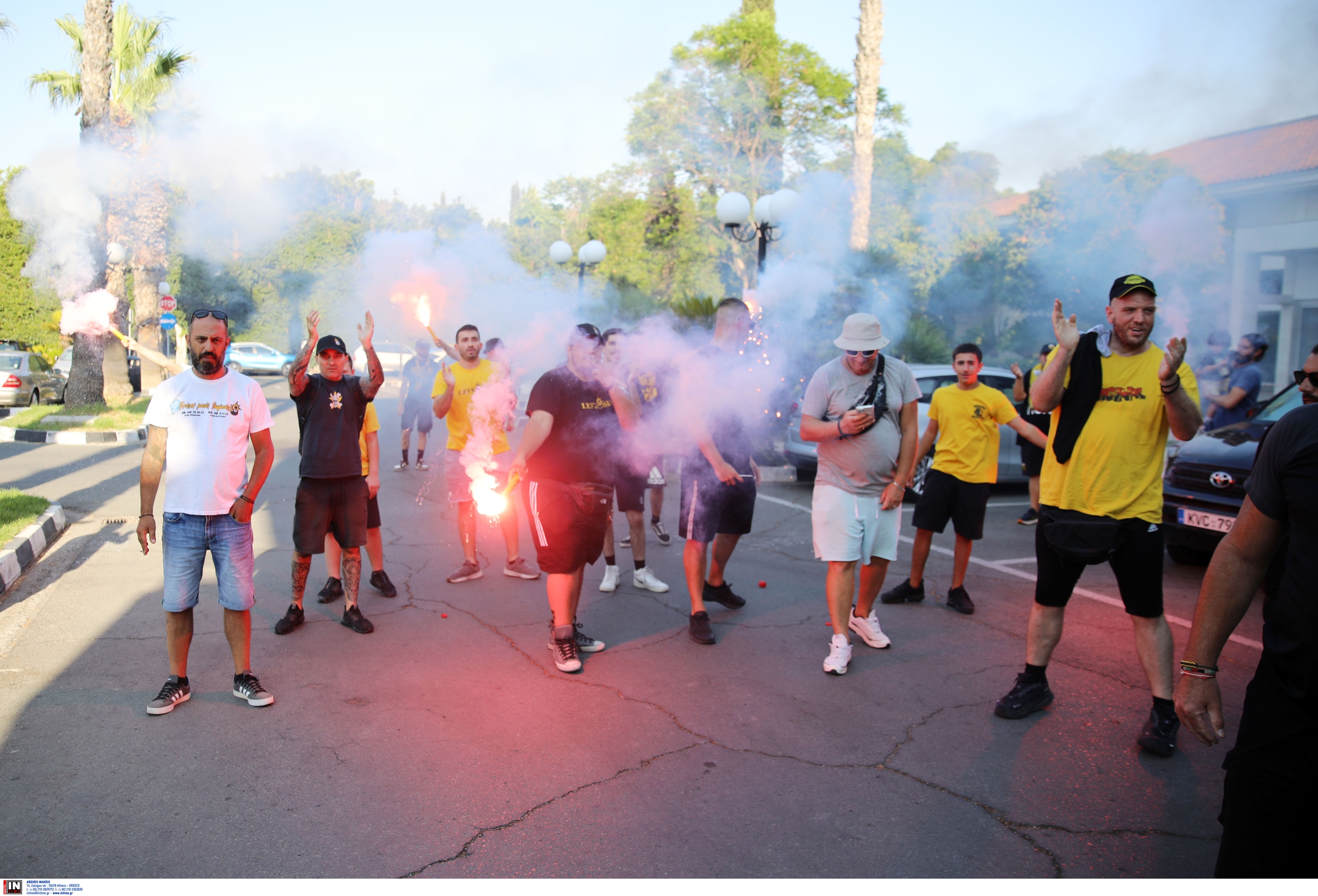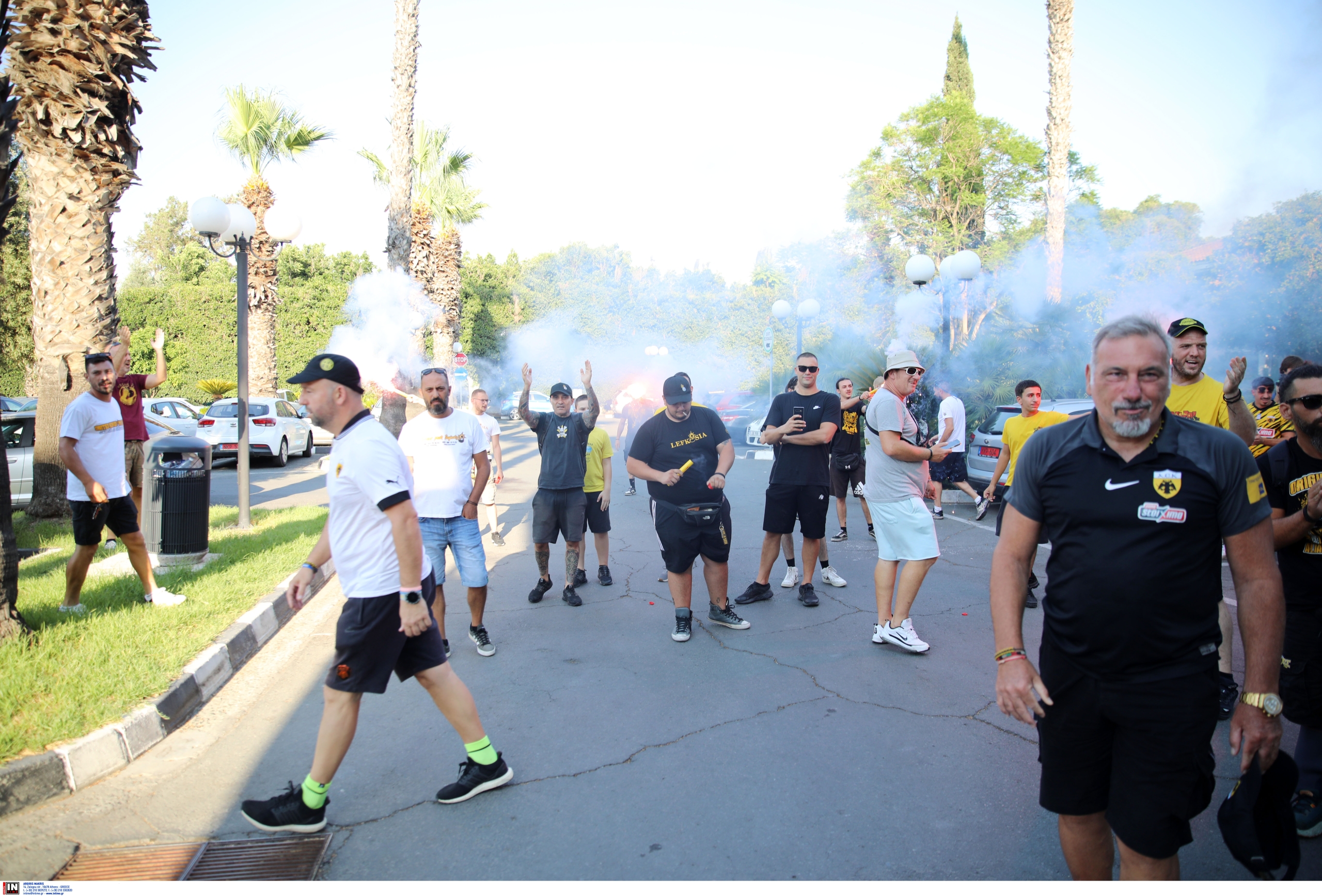 Καπνογόνα και συνθήματα ήταν αυτά που κυριάρχησαν, με μερικούς νεαρούς φίλους των «κιτρινόμαυρων» να παίρνουν και αυτόγραφα από τους παίκτες.