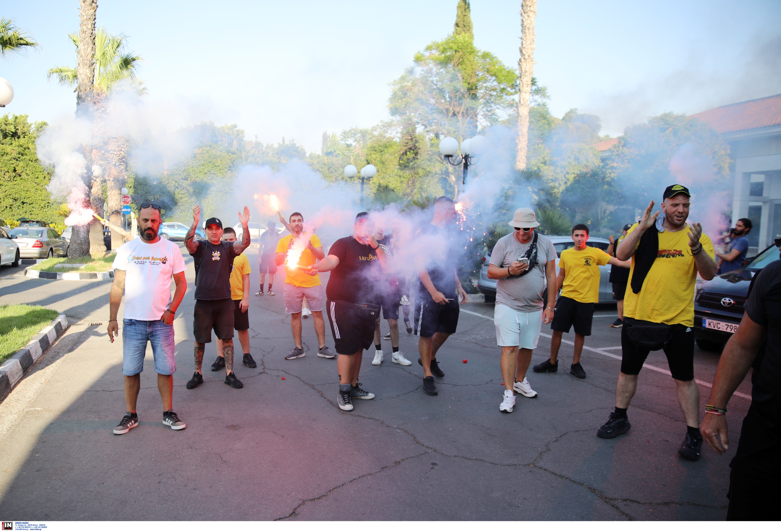 Κατά την αναχώρηση της Ένωσης από το ξενοδοχείο πλήθος κόσμου αποθέωσε τον Ματίας Αλμέιδα και τους ποδοσφαιριστές του.