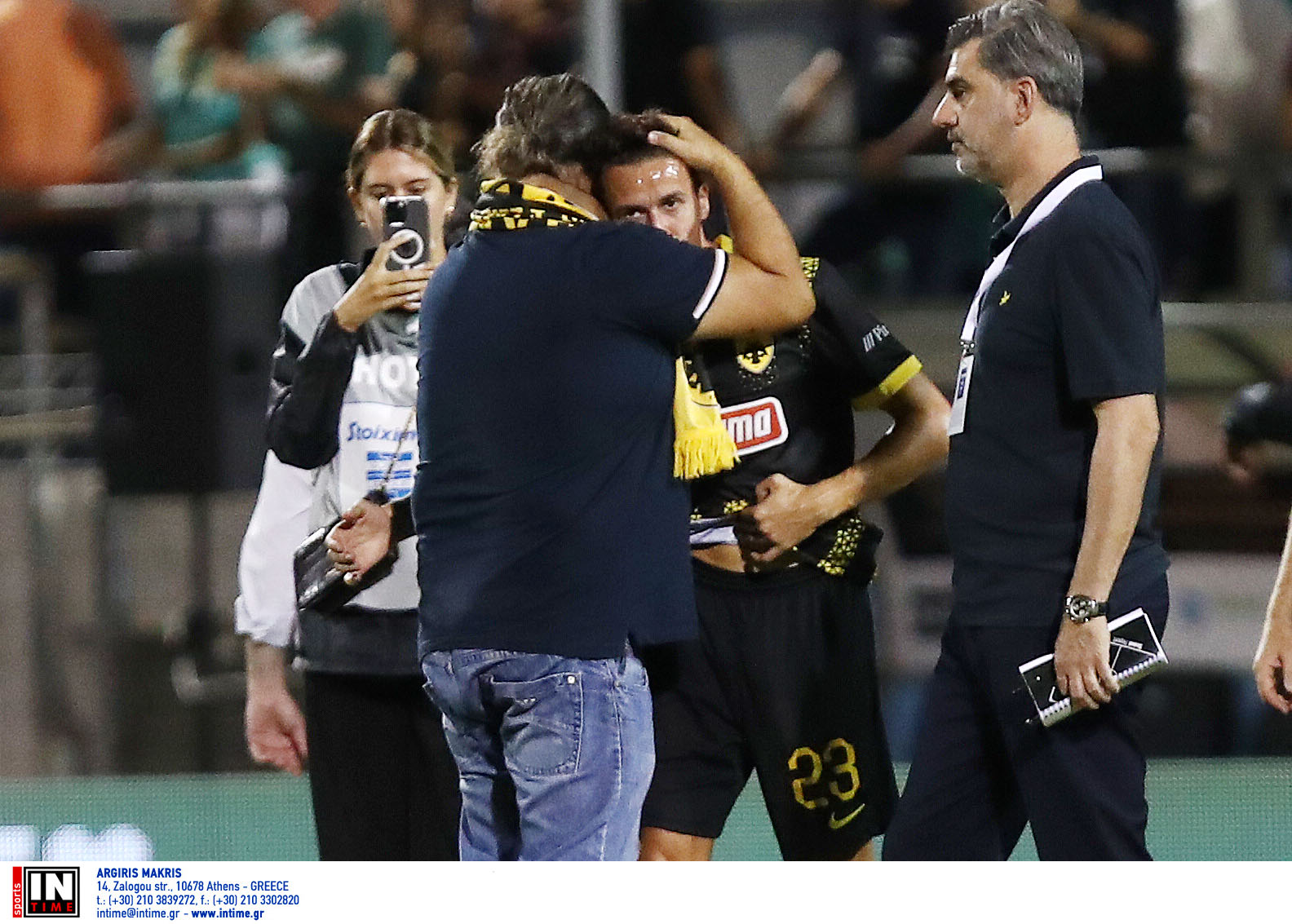 Μετά το τέλος του αγώνα, ο ισχυρός άνδρας της «κιτρινόμαυρης» ΠΑΕ, Μάριος Ηλιόπουλος, μπήκε στον αγωνιστικό χώρο του γηπέδου για να συγχαρεί τον Μάρκο Νίκολιτς και τους παίκτες του, με τον φωτογραφικό φακό να πιάνει τον πρόεδρο της «Ένωσης» να αγκαλιάζει τον Σέρβο τεχνικό.