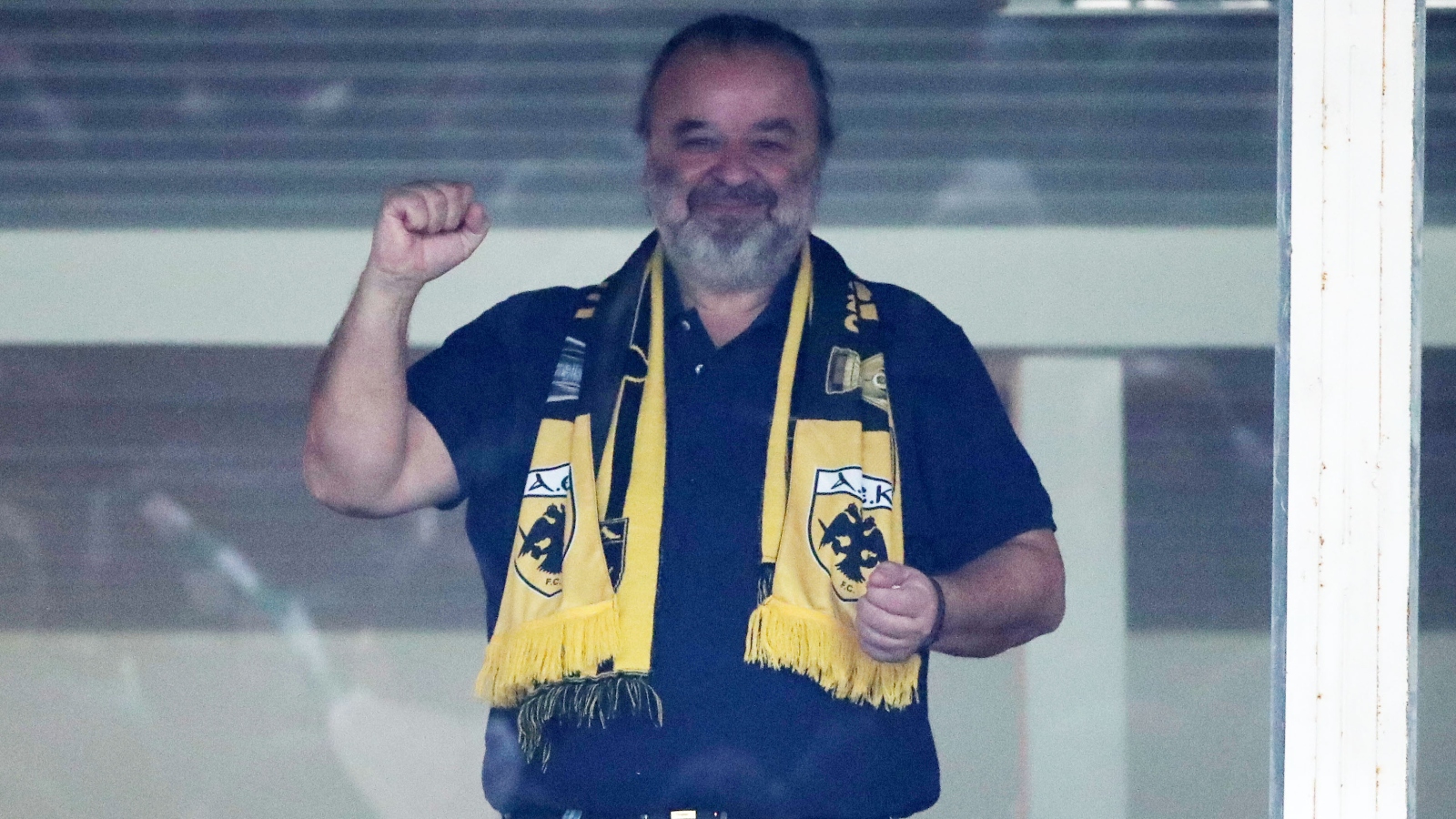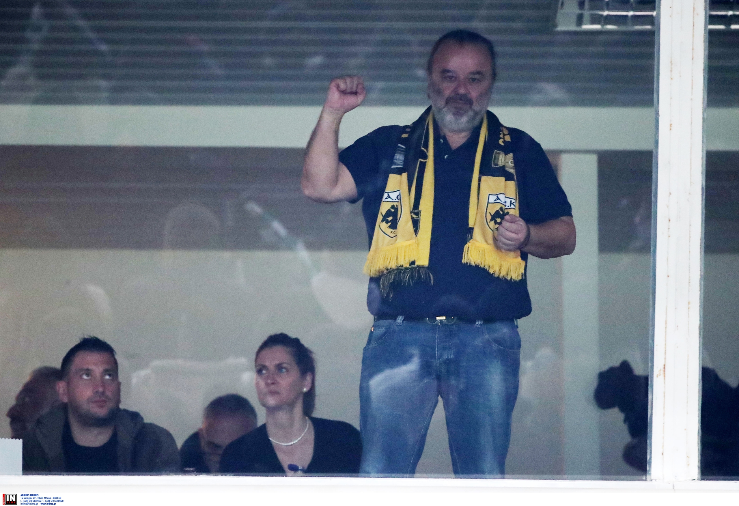 Βρισκόμενος στα μπουθ με το αγαπημένο του κασκόλ της ΑΕΚ, είναι κοντά στο σύνολο του Ματίας Αλμέιδα άλλο ένα βράδυ.
