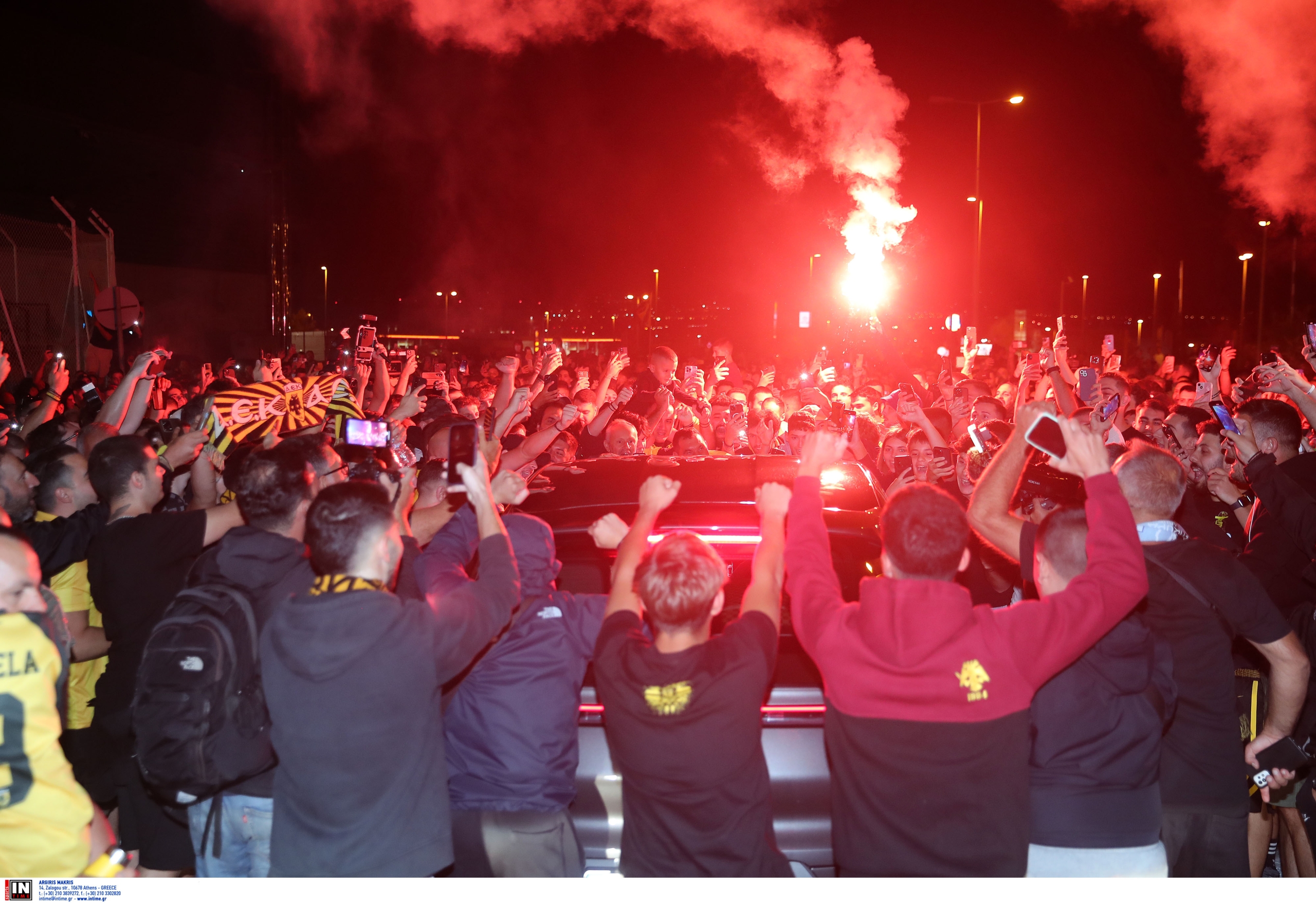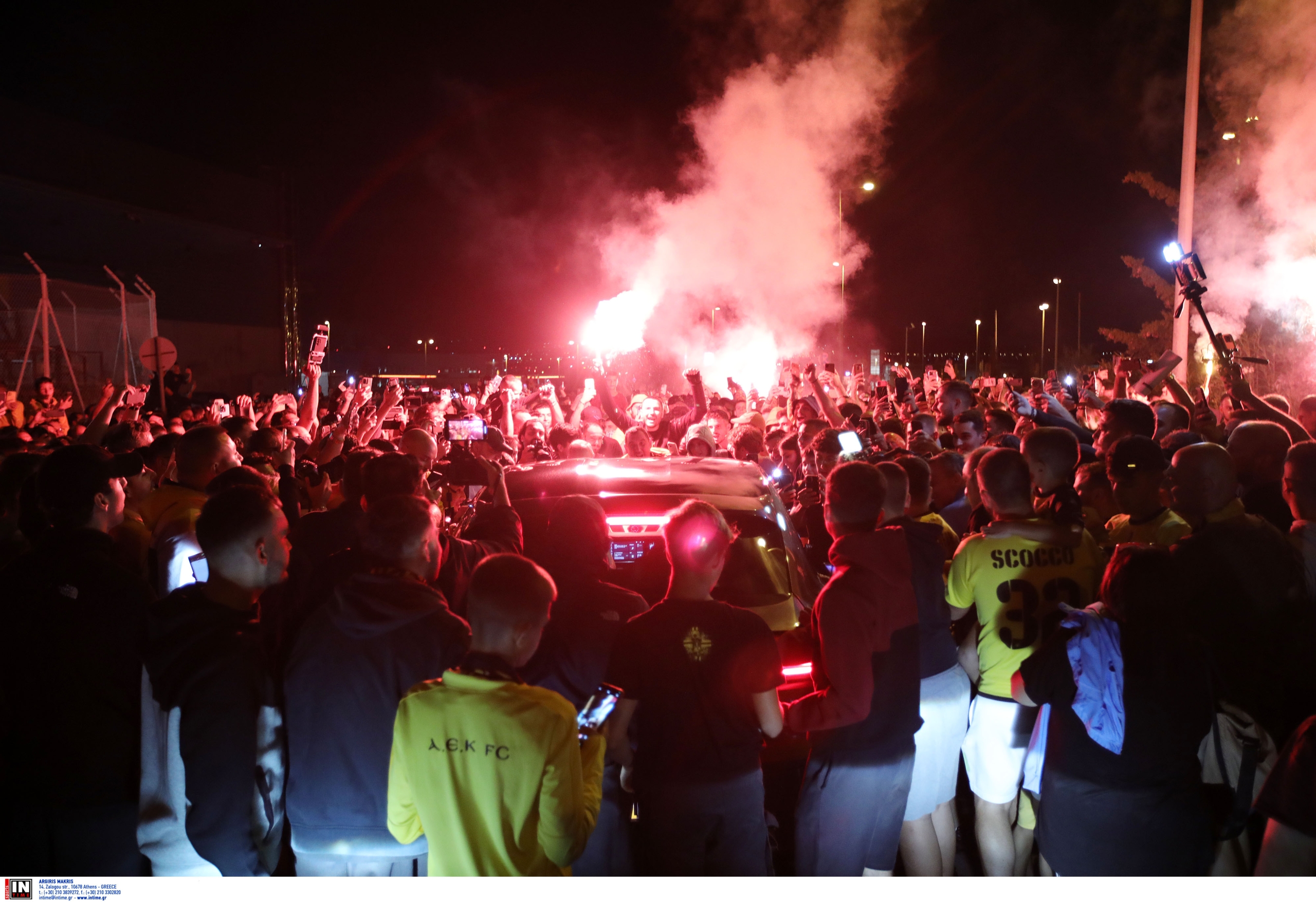 Από νωρίς οι οπαδοί της ΑΕΚ βρέθηκαν στο αεροδρόμιο για να τον υποδεχθούν και με το που… πάτησε το πόδι του αποθεώθηκε.