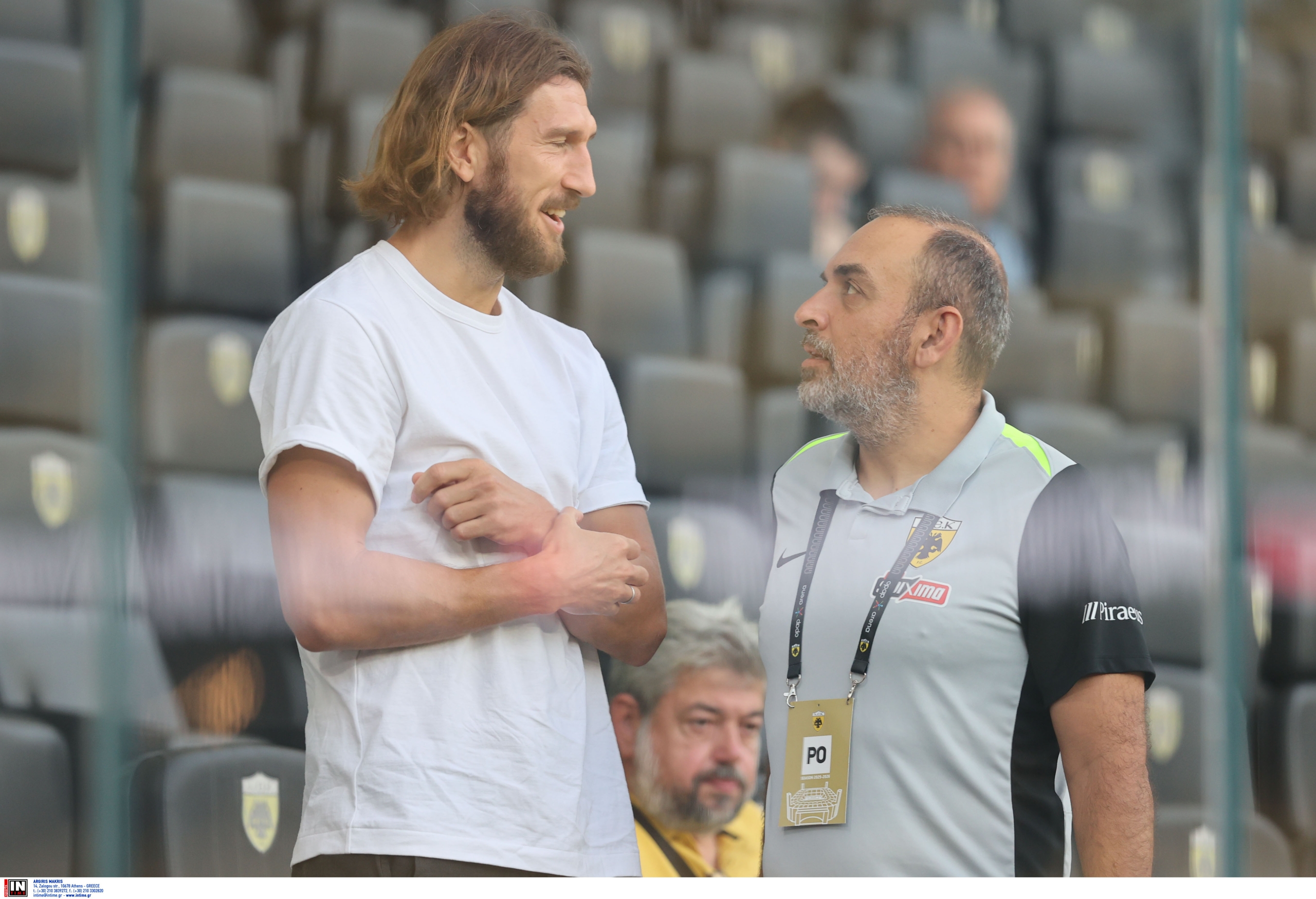 Στο γήπεδο βρίσκονται ιδιαίτερες παρουσίες, με εκείνη του Ντμίτρο Τσιγκρίνσκι να ξεχωρίζει στα επίσημα της Νέας Φιλαδέλφειας.