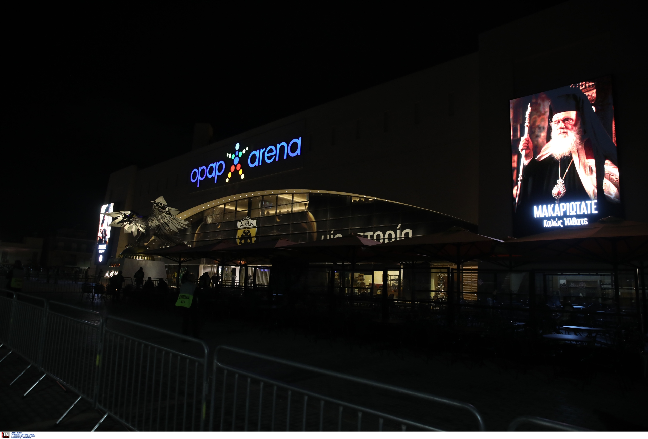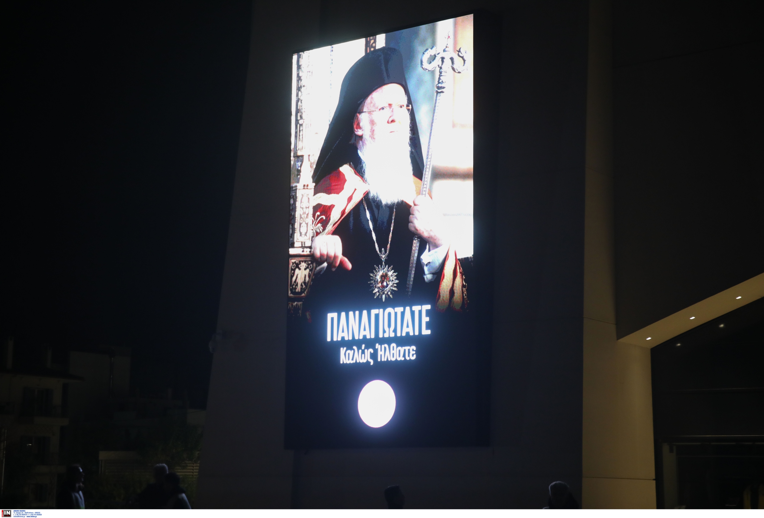Η περιοχή γύρω από την OPAP Arena έχει μετατραπεί σε φρούριο, με δρακόντεια μέτρα ασφαλείας να εφαρμόζονται σε κάθε γωνιά. Το πλήθος κόσμου που έχει συγκεντρωθεί από νωρίς έξω από τον ναό αποδεικνύει τη σημασία της ημέρας, ενώ στις εξωτερικές οθόνες του γηπέδου προβάλλεται μήνυμα καλωσορίσματος, τιμώντας τον Οικουμενικό Πατριάρχη.