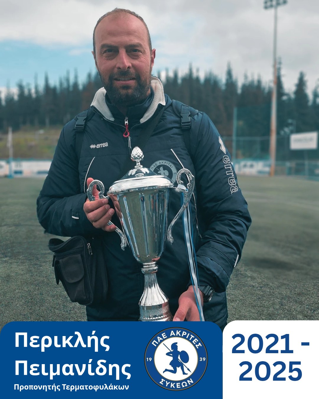 Μετά από τέσσερα χρόνια, ολοκληρώνεται η συνεργασία των Ακριτών Συκεών με τον προπονητή τερματοφυλάκων, Περικλή Πεϊμανίδη, τόσο στην πρώτη ομάδα, όσο και στις ακαδημίες.