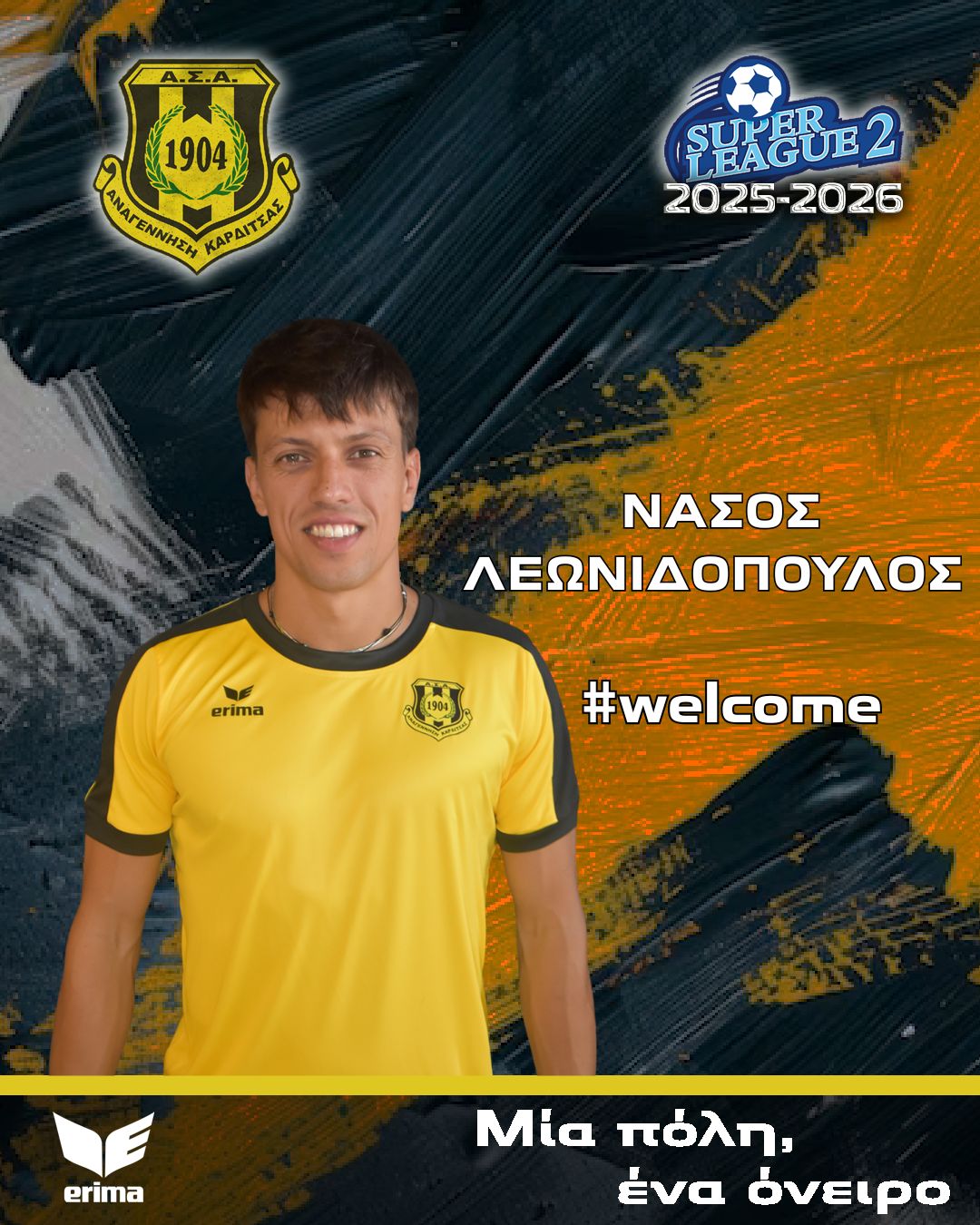 Η ΠΑΕ Αναγέννηση Καρδίτσας ανακοινώνει την έναρξη της συνεργασίας της με τον ποδοσφαιριστή Νάσο Λεωνιδόπουλο.