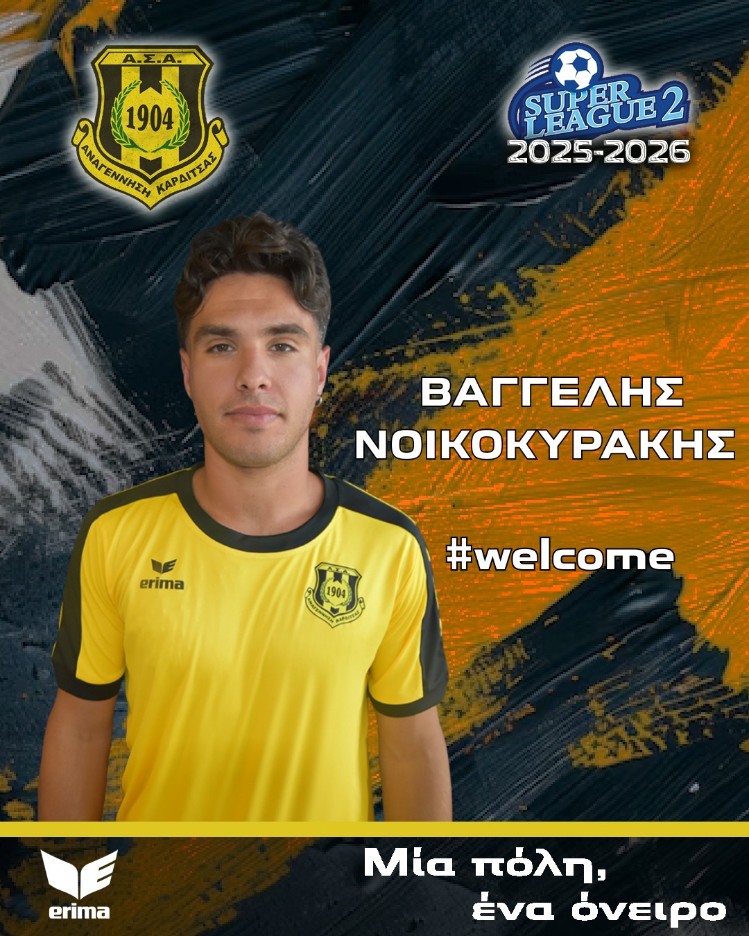 Η ΠΑΕ Αναγέννηση Καρδίτσας ανακοινώνει την έναρξη της συνεργασίας της με τον ποδοσφαιριστή Βαγγέλη Νοικοκυράκη.
