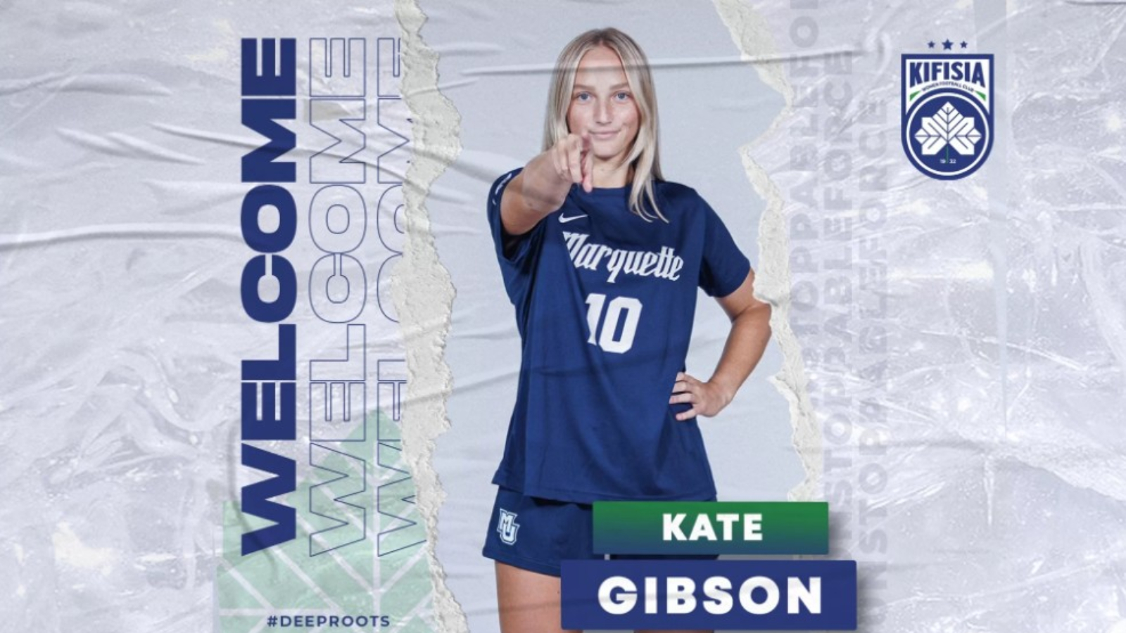 Η Κηφισιά ανακοινώνει την έναρξη συνεργασίας με την Kate Gibson, η οποία αγωνίζεται ως επιθετικός.