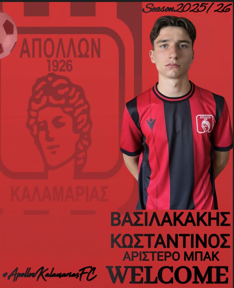 «Ο Απόλλων Καλαμαριάς είναι στην ευχάριστη θέση να ανακοινώσει την έναρξη συνεργασίας με τον 18χρονο αριστερό μπακ Κωνσταντίνο Βασιλακάκη!