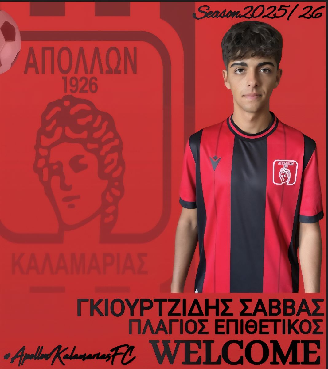 «⚽️❗️Ο Απόλλων Καλαμαριάς είναι στην ευχάριστη θέση να ανακοινώσει την έναρξη συνεργασίας με τον 18χρονο πλάγιο επιθετικό Σάββα Γκιουρτζίδη.