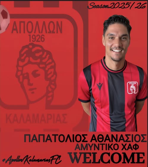 «⚽️❗️Ο Απόλλων Καλαμαριάς είναι στην ευχάριστη θέση να ανακοινώσει την απόκτηση του 31χρονου αμυντικού χαφ Αθανάσιου Παπατόλιου.