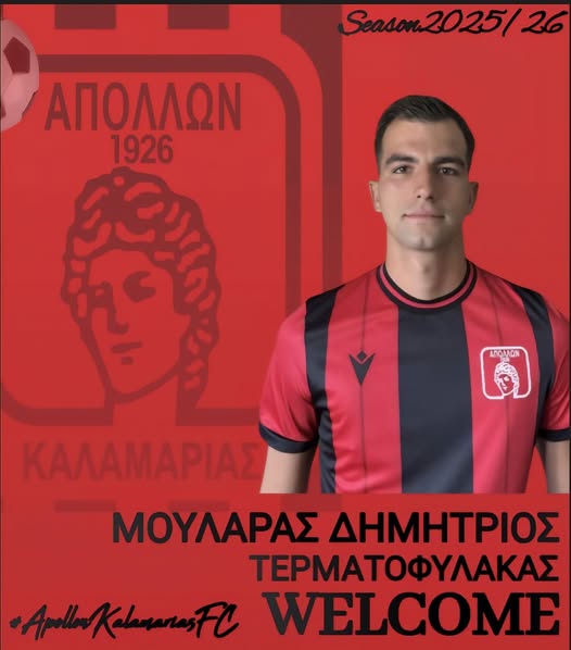 «Ο Απόλλων Καλαμαριάς είναι στην ευχάριστη θέση να ανακοινώσει την επιστροφή του 23χρονου τερματοφύλακα Δημήτρη Μουλαρά στην ομάδα μας.