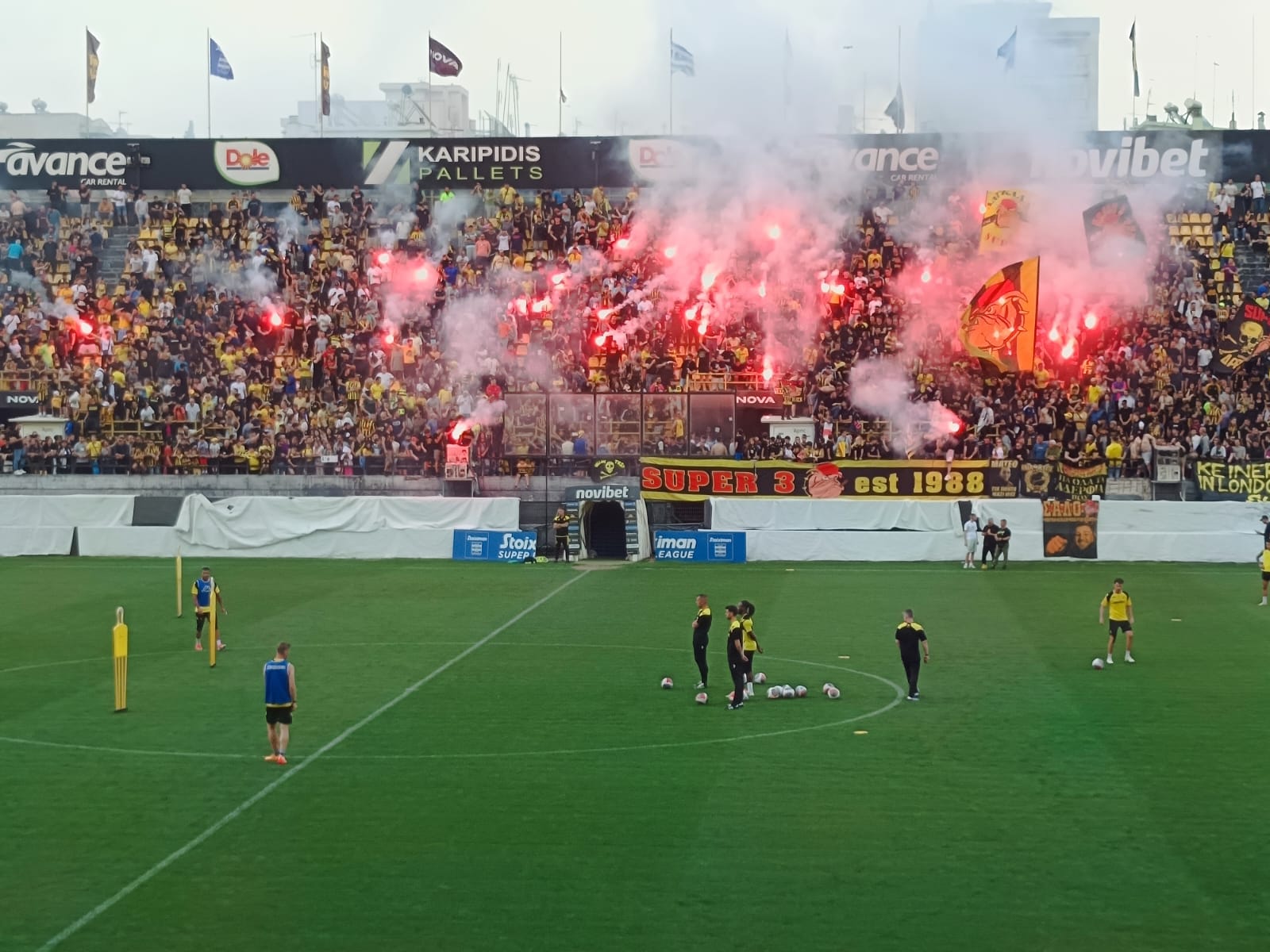 Απίστευτη ατμόσφαιρα δημιούργησαν χιλιάδες οπαδοί του Άρη που βρέθηκαν στο «Κλ. Βικελίδης» για την ανοιχτή προπόνηση της ομάδας.