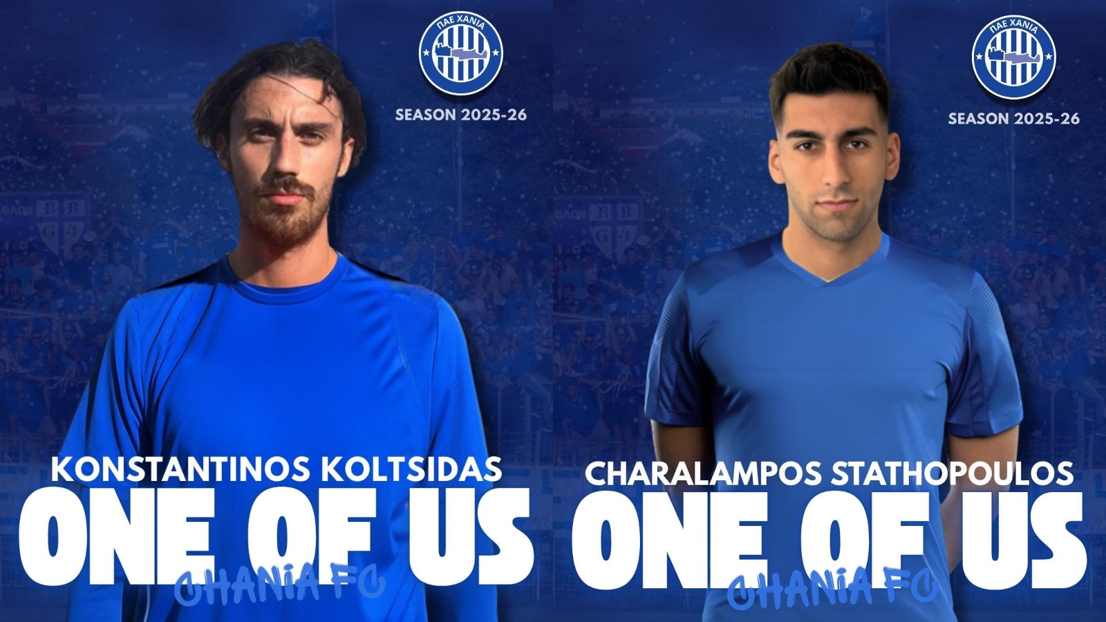 Τα Χανιά ανακοίνωσαν την απόκτηση των Κολτσίδα και Σταθόπουλου. Αμφότεροι αγωνίζεται στην άμυνα, ο πρώτος προέρχεται από την Παναχαϊκή και ο δεύτερος από τον Παναιγιάλειο.