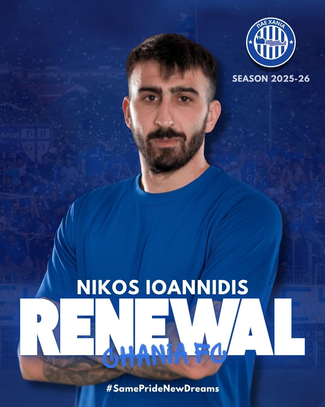 🤝🏻 Η ΠΑΕ ΧΑΝΙΑ με ιδιαίτερη ικανοποίηση ανακοινώνει την ανανέωση της συνεργασίας με τον επιθετικό, Νίκο Ιωαννίδη, ο οποίος θα συνεχίσει να αποτελεί σημαντικό πυλώνα της επιθετικής γραμμής της ομάδας μας.