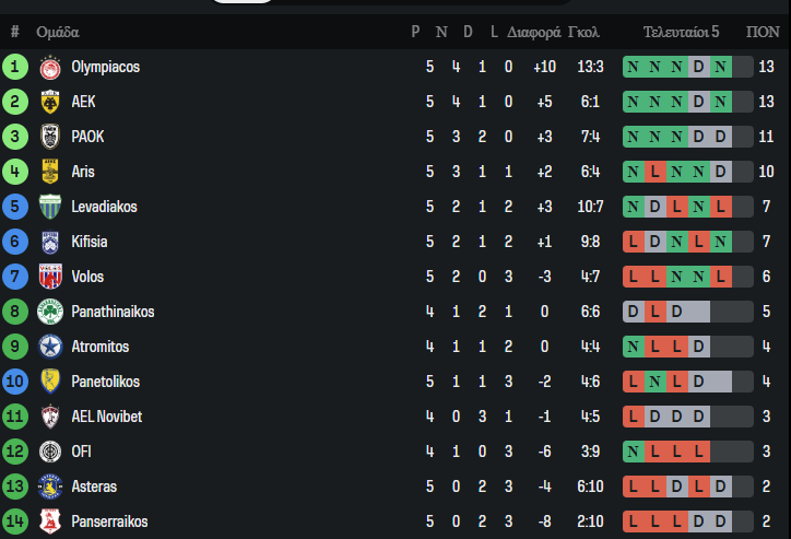 Ακόμη μία αγωνιστική της Stoiximan Super League, η 5η, ολοκληρώθηκε (σχεδόν, εκκρεμεί το παιχνίδι του Ατρομήτου με την ΑΕΛ Novibet) με εκπλήξεις, μεγάλες νίκες και διαφοροποιήσεις στην κορυφή της βαθμολογίας.