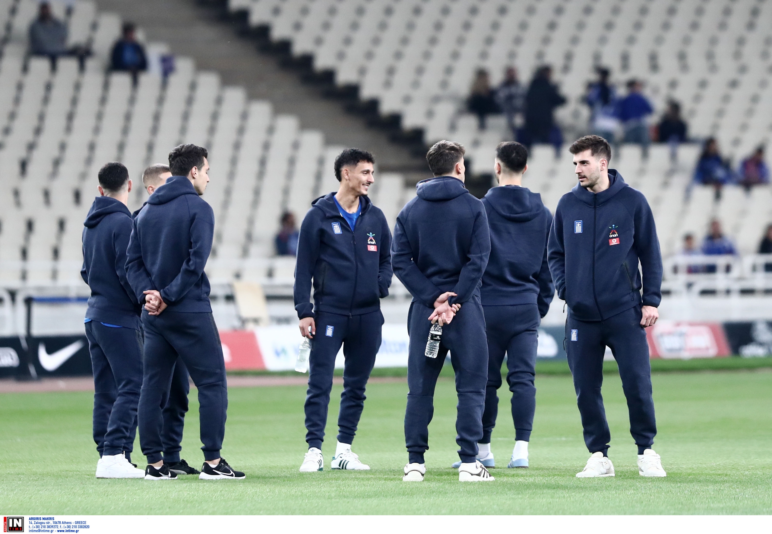 Περίπου μιάμιση ώρα πριν από την έναρξη του κρίσιμου αγώνα οι διεθνείς μας έκαναν την πρώτη τους βόλτα στον αγωνιστικό χώρο του ΟΑΚΑ.