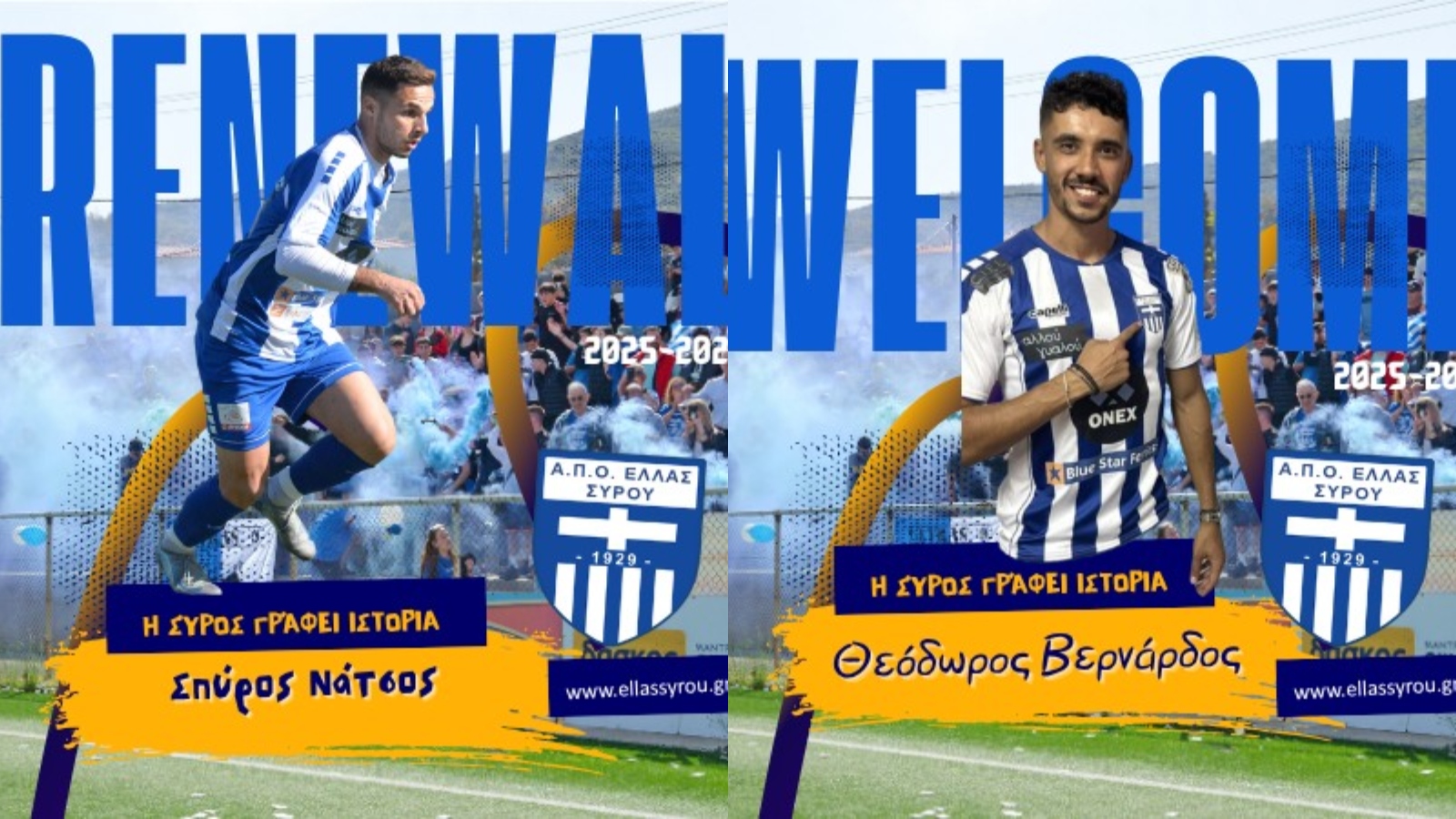 Η ομάδα του νησιού ξεκίνησε με τις ανανεώσεις αλλά και τις προσθήκες. Στη Σύρο θα συνεχίσει ο Σπύρος Νάτσος που ήταν από τα βασικά γρανάζια στην περσινή πορεία προς τον τίτλο, ενώ ανακοινώθηκε επίσημα ο Θόδωρος Βερνάρδος.