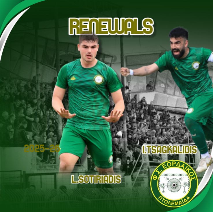 «Το “Φ.Σ. Εορδαϊκός” βρίσκεται στην ευχάριστη θέση να ανακοινώσει την ανανέωση της συνεργασίας με τον Ηλία Τσαγκαλίδη (εκ των αρχηγών) και τον Λευτέρη Σωτηριάδη για τη νέα αγωνιστική περίοδο.