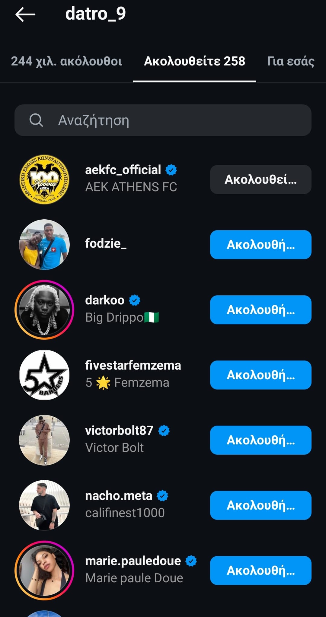 Παράλληλα ο νεαρός επιθετικός των «μπλε» ακολούθησε και την ΑΕΚ στο Instagram.