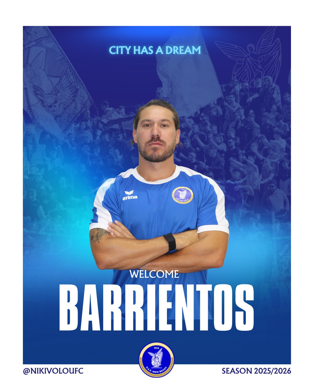 Η ΠΑΕ Νίκη Βόλου καλωσορίζει τον «Barri» και του εύχεται μία επιτυχημένη αγωνιστική σεζόν, με υγεία».