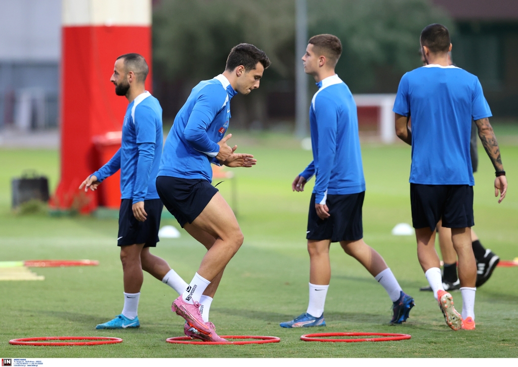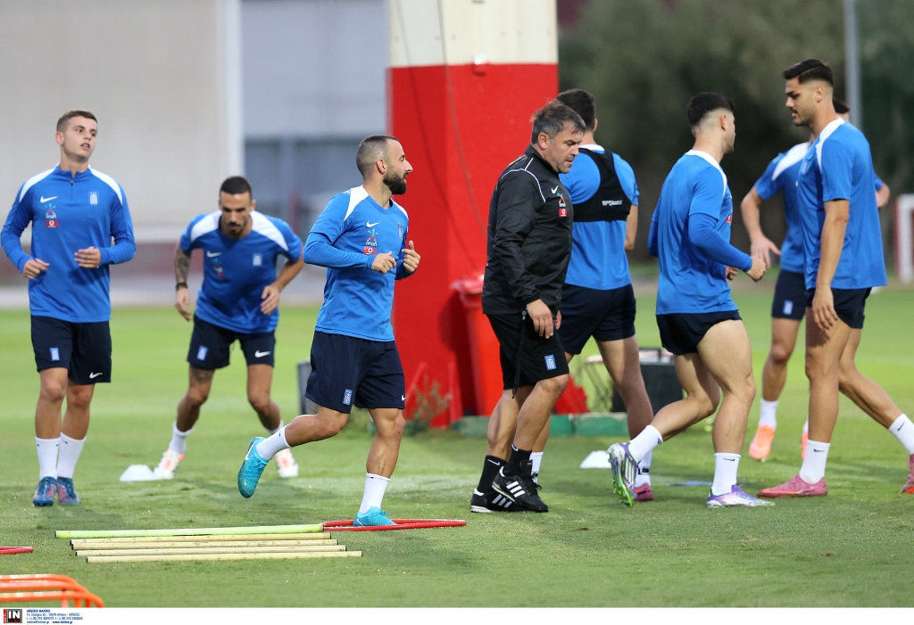 Η Εθνική Ελλάδος πραγματοποίει την πρώτη της προπόνηση ενόψει των αγώνων με Σκωτία και Δανία για τα προκριματικά του Μουντιάλ