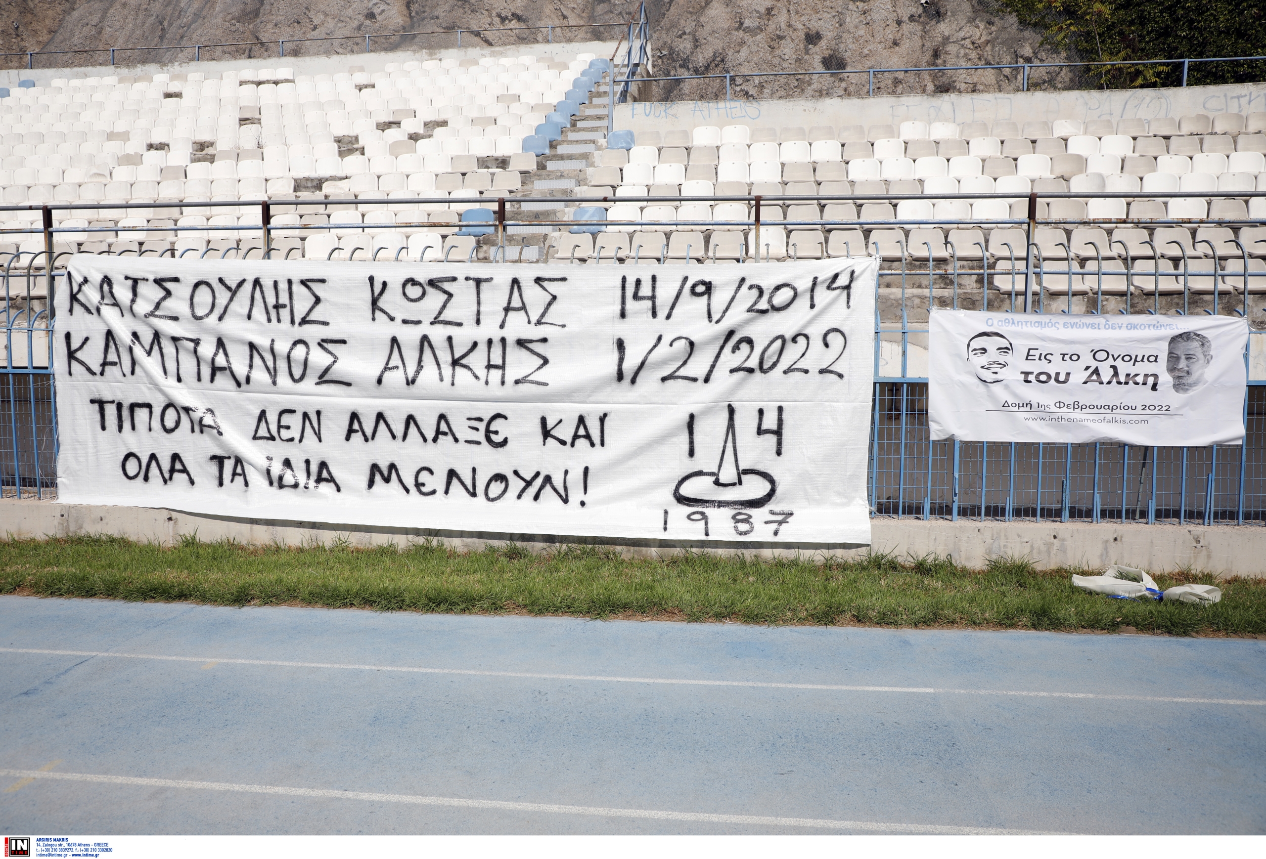 Στο παιχνίδι Εθνικός – Άρης για την 4η φάση του Κυπέλλου Ελλάδας, αναρτήθηκε πανό για τους δύο αδικοχαμένους οπαδούς των δύο ομάδων, Άλκη Καμπανό και Κώστα Κατσούλη.