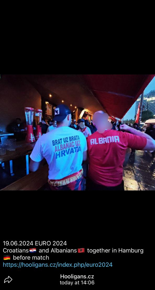 Παράλληλα αρκετοί Κροάτες σκεπάζουν τα αυτοκίνητά τους με την σημαία της Αλβανίας, με το κλίμα να είναι εξαιρετικός ανάμεσα στους φίλους των δύο ομάδων.