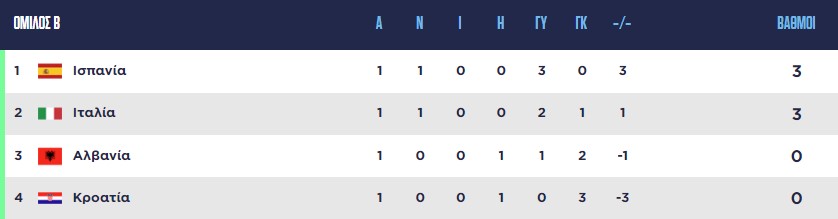 - 24/06 22:00 Αλβανία – Ισπανία