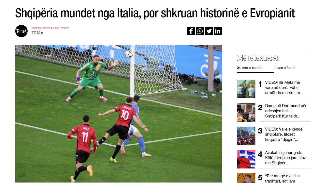 gazetatema.net: «Η Αλβανία μπορούσε να κερδίσει την Ιταλία, αλλά γράφει ευρωπαϊκή ιστορία».