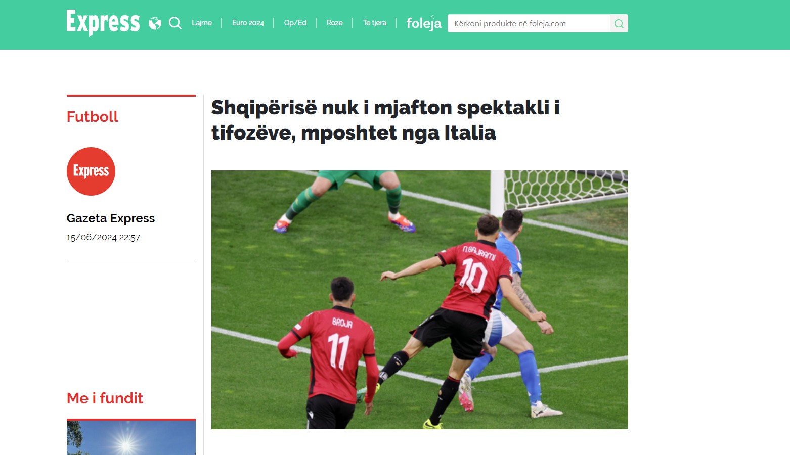 gazetaexpress.com: «Η Αλβανία δεν ικανοποιήθηκε, παρά τον δυναμισμό των φιλάθλων της, ηττήθηκε από την Ιταλία».
