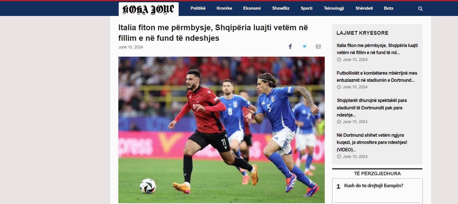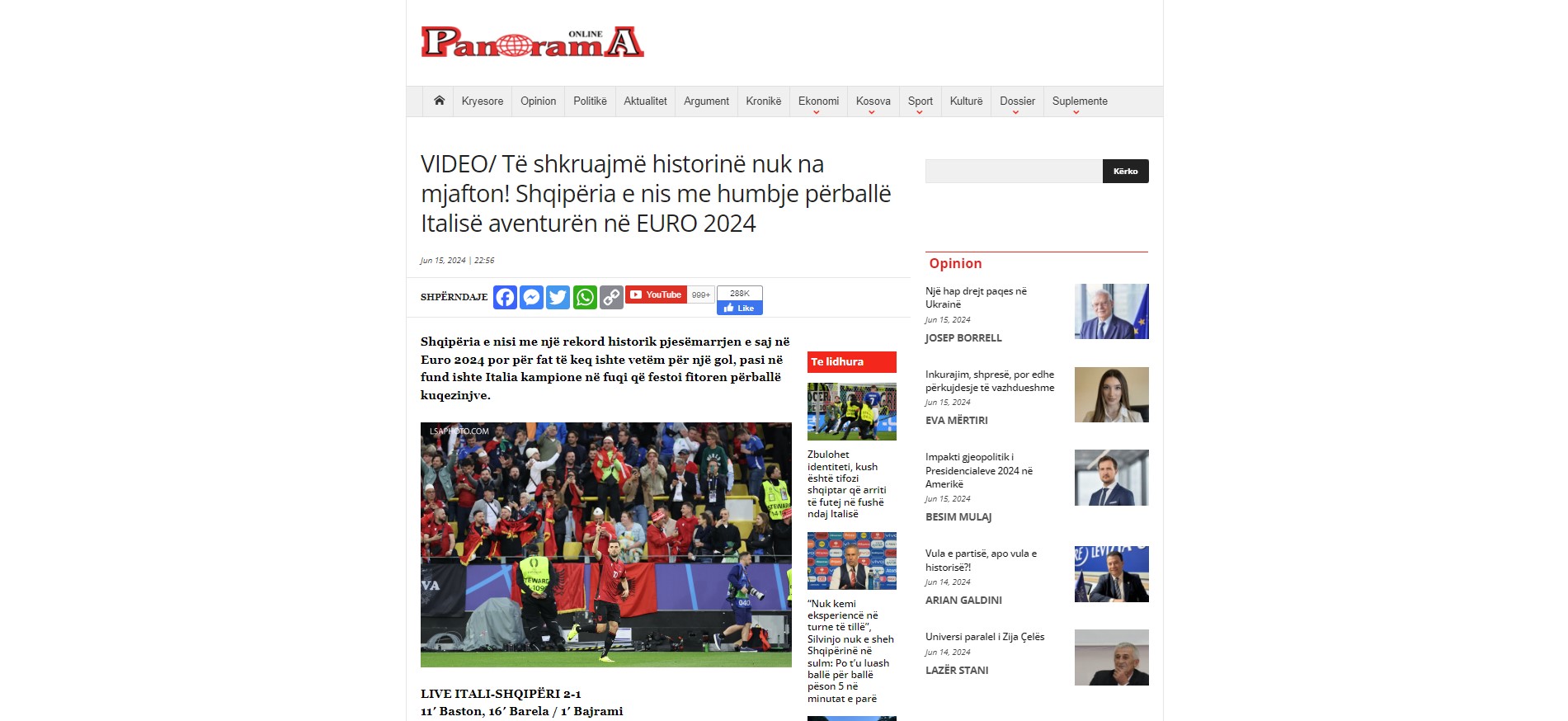 panorama.com.al: «Γράψαμε ιστορία, αλλά δεν είναι αρκετό για εμάς! Η Αλβανία ξεκινάει την περιπέτειά της στο Euro με ήττα από την Ιταλία».