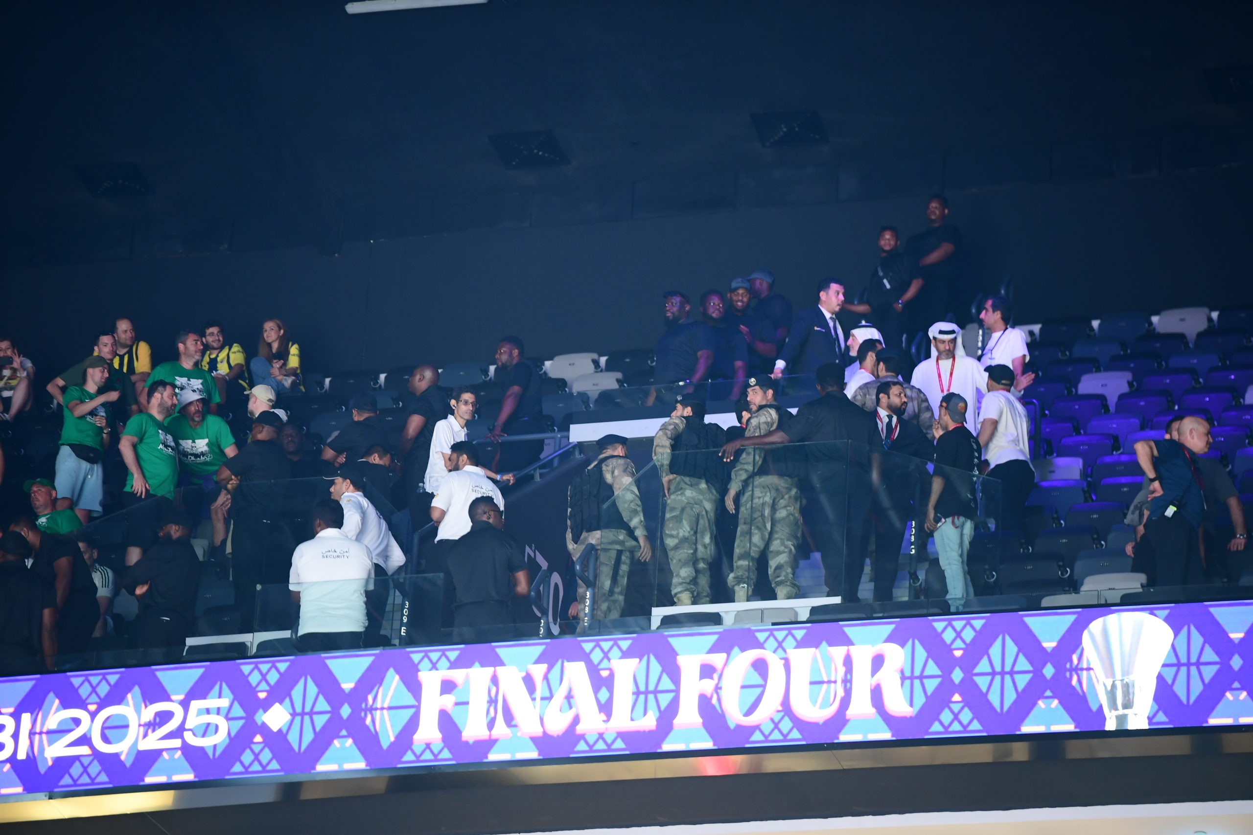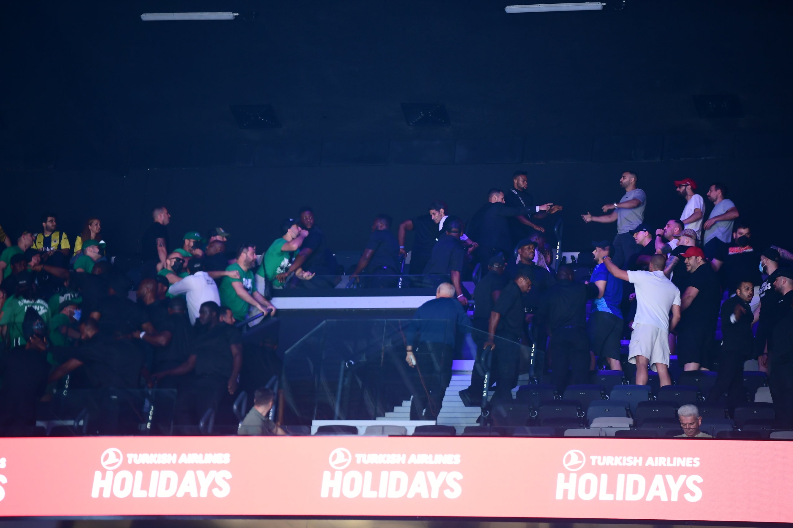 Λίγη ώρα πριν από τη σέντρα του μικρού τελικού του Final 4 της Euroleague στο Άμπου Ντάμπι, σημειώθηκε ένταση στις εξέδρες της «Etihad Arena», με πρωταγωνιστές οπαδούς του Παναθηναϊκού και του Ολυμπιακού.