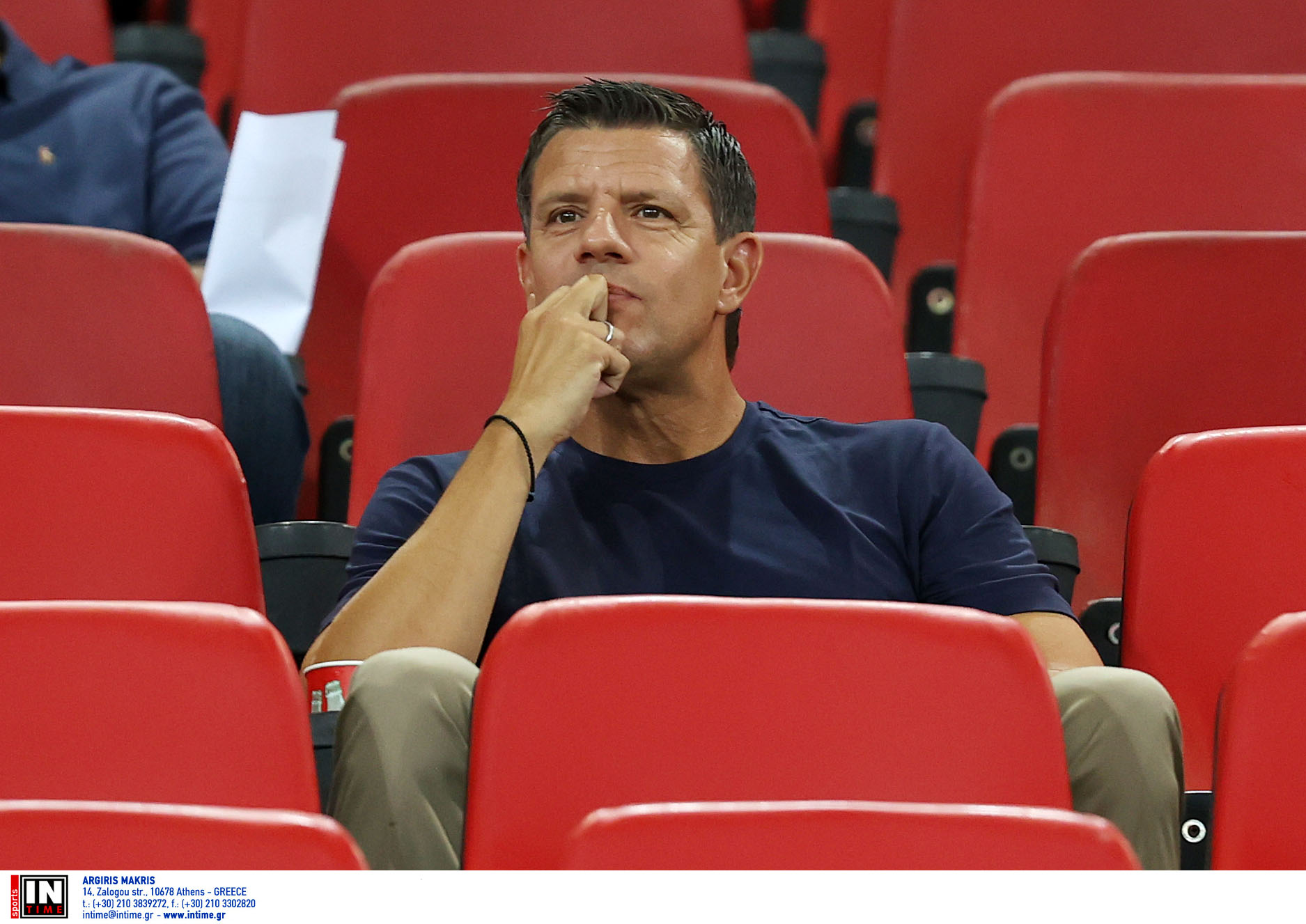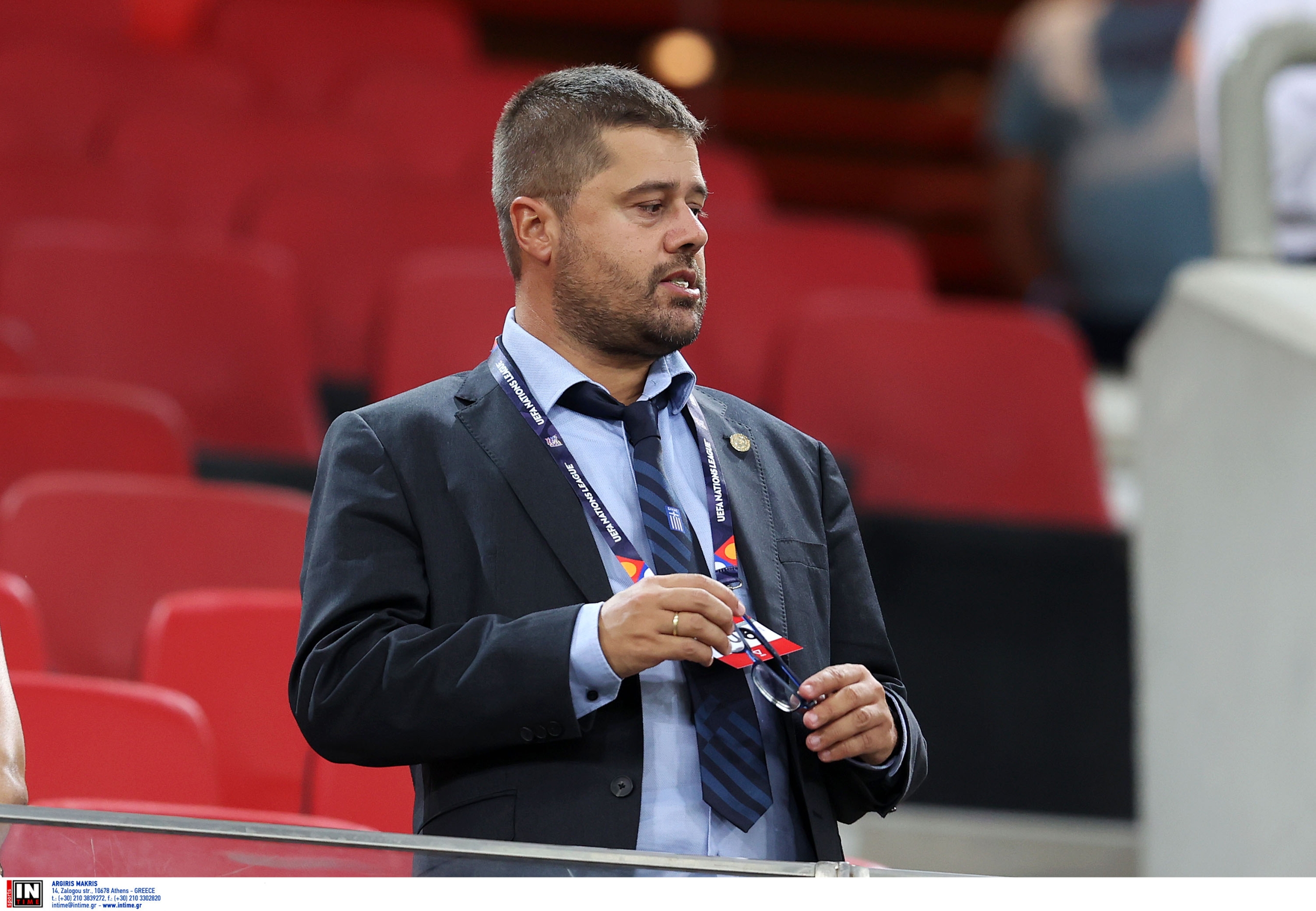Την αναμέτρηση παρακολουθεί από κοντά και ο πρώην τεχνικός διευθυντής της Εθνικής και πρωταθλητής Ευρώπης το 2004, Τάκης Φύσσας.