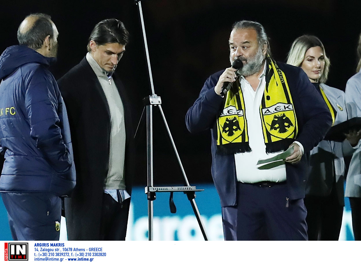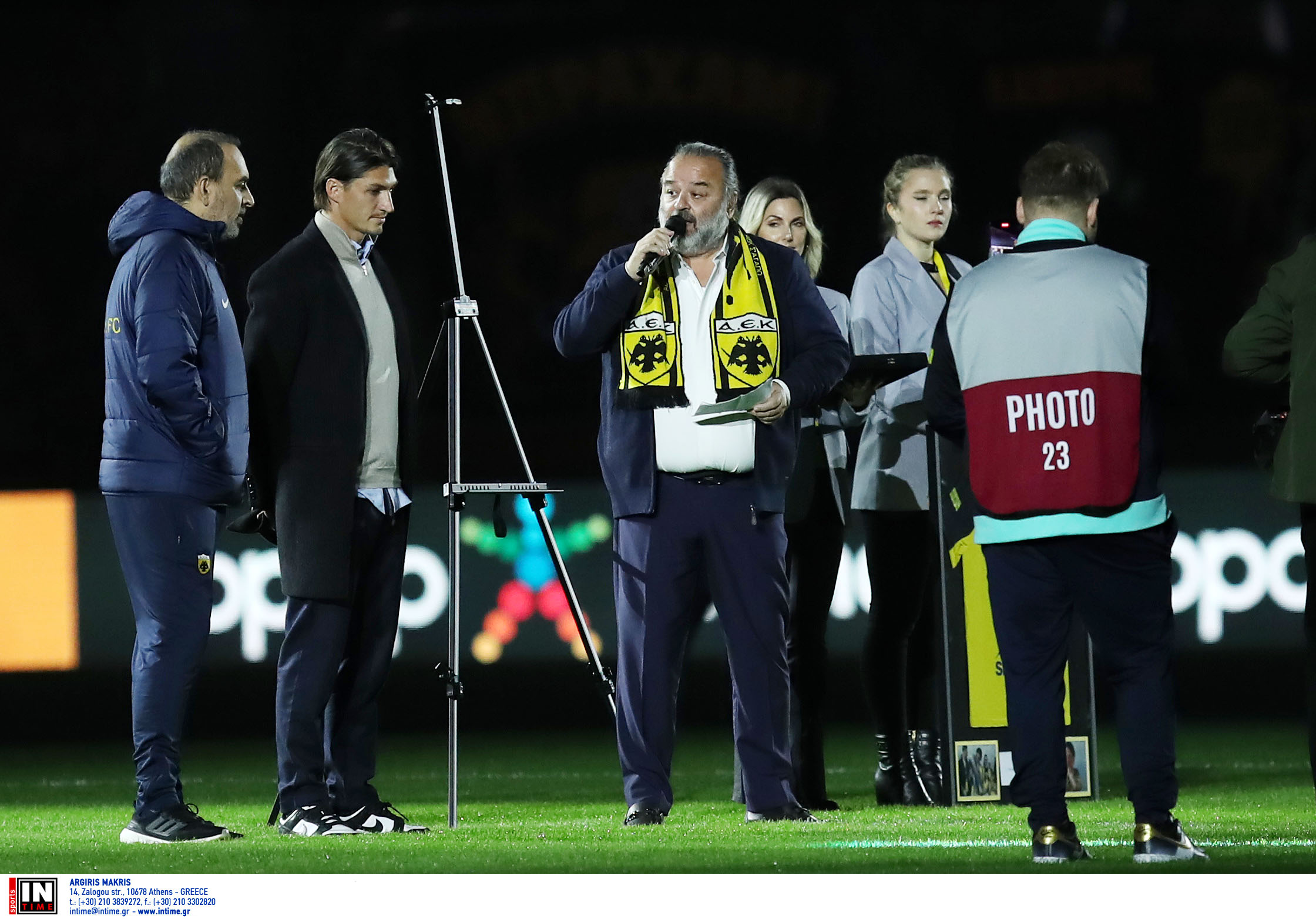 Προβληματίζονται κάποιοι από το σύστημα, που μιλάει η ΑΕΚ για το ευ αγωνίζεσθαι. Θέλουν, δεν θέλουν, η αξιοπρέπεια και ο πολιτισμός αυτής της ένδοξης χώρας και επειδή το θέλει η πλειοψηφία, θα γίνει. Σεβόμαστε όλους τους φίλαθλους, όλων των ομάδων» τόνισε μεταξύ άλλων ο Μάριος Ηλιόπουλος, αφού πρώτα τίμησε τον Στίβεν Τσούμπερ»