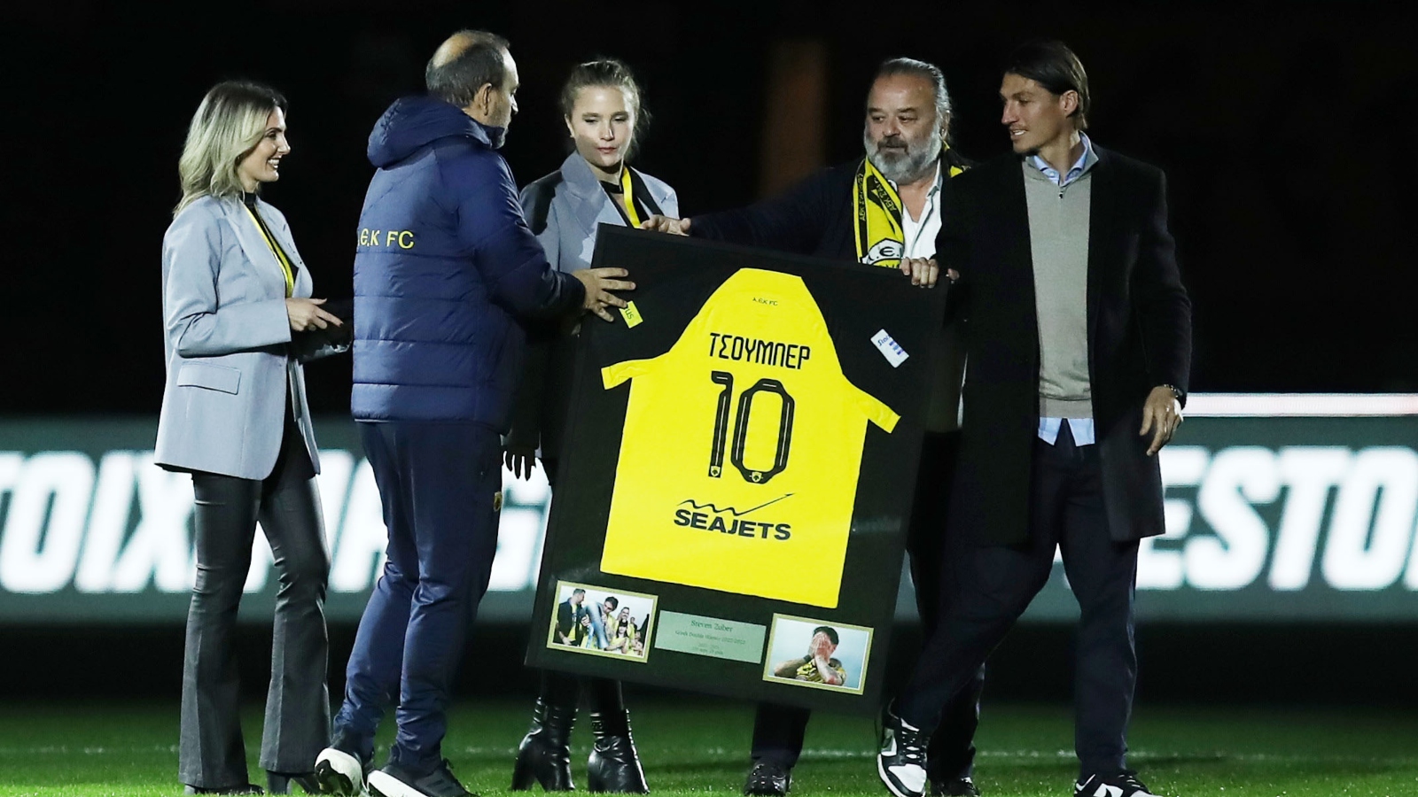Πριν τη σέντρα της αναμέτρησης με τον ΠΑΟΚ, ο Τσούμπερ γνώρισε την αποθέωση από τους φίλους της Ένωσης στη Νέα Φιλαδέλφεια και βραβεύτηκε στο κέντρο του γηπέδου με κορνιζαρισμένη τη φανέλα του και μια τιμητική πλακέτα από τον ιδιοκτήτη της ΑΕΚ, Μάριο Ηλιόπουλο.