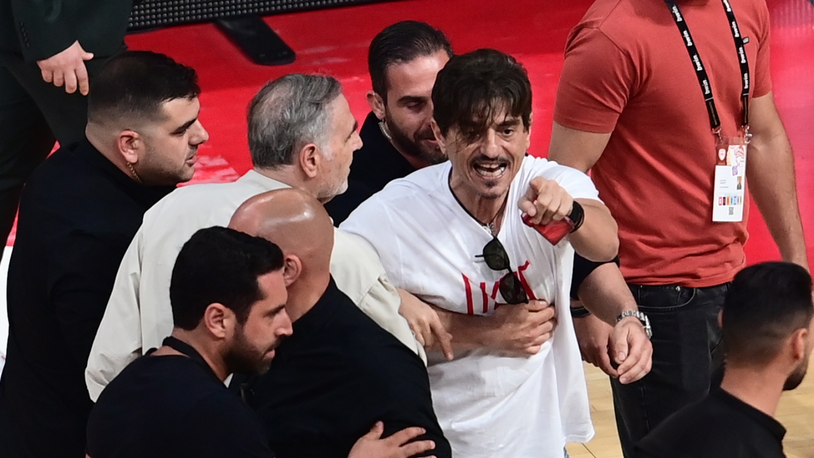 Παράλληλα εξέφρασε τη δυσφορία του για την αντιμετώπιση των αστυνομικών στα γήπεδα. «Στα γήπεδά μας έχουν βρίσει νεκρούς, υπάρχουν πανό και εναντίον του Λυγγερίδη και δεν ανοίγει ρουθούνι. Για μένα στα υβριστικά συνθήματα πρέπει να διακόπτεται το παιχνίδι. Όταν ένα ολόκληρο γήπεδο φωνάζει ‘μπάτσοι, γουρούνια, δολοφόνοι’, η αστυνομία πρέπει να φεύγει. Σάκος του μποξ για να εκτονώνεται ο καθένας και άνθρωποι που έχουν δισεκατομμύρια, να μην μπορούν να προστατέψουν τα γήπεδα και να θέλουν 500 αστυνομικούς, δεν μπορεί να γίνεται», τόνισε.