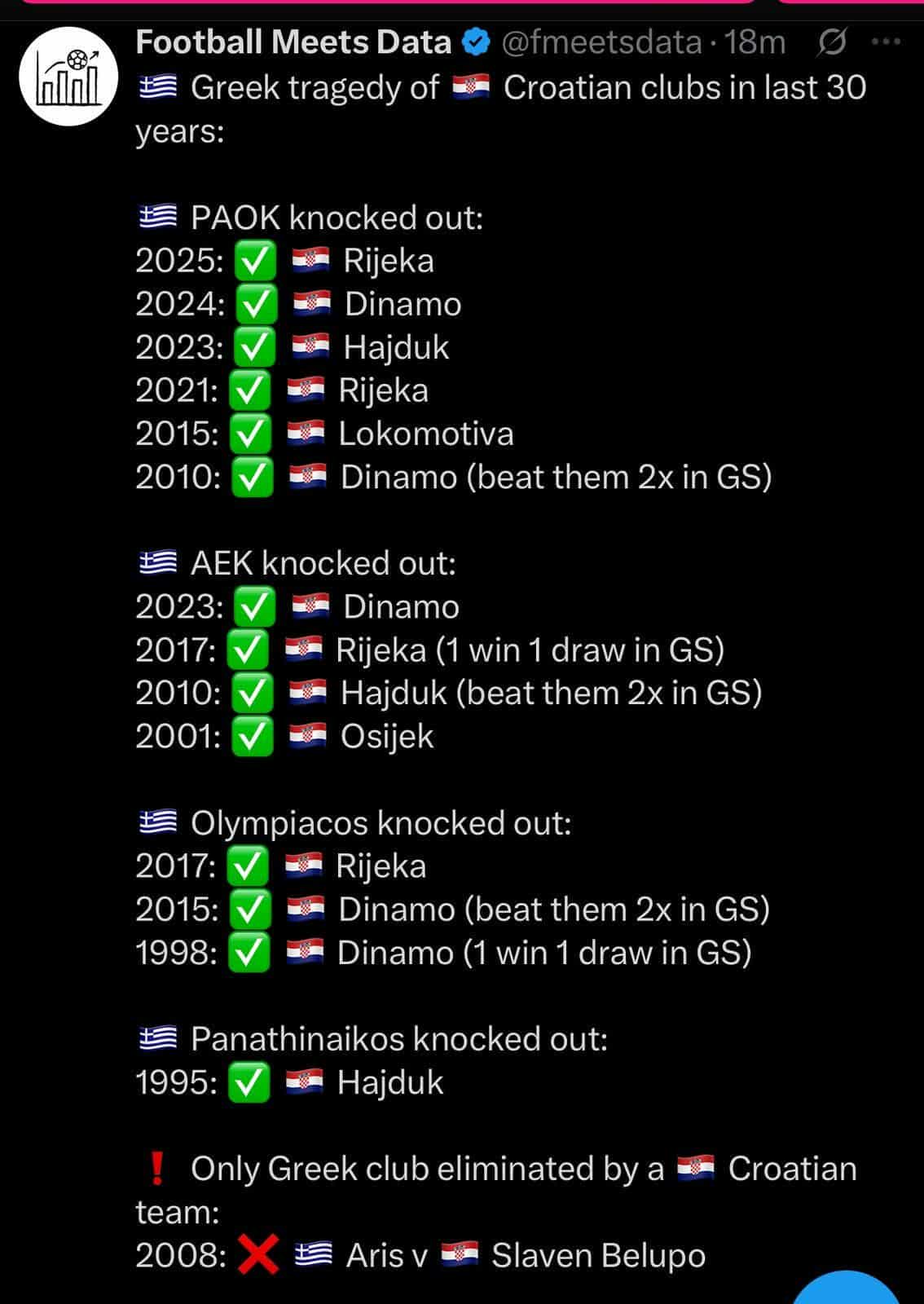 Ο ΠΑΟΚ πέρασε στη League Phase του Europa League με εμφατικό τρόπο μετά το 5-0 με τη Ριέκα, με τον δικέφαλο να συνεχίζει μια παράδοση κόντρα σε ομάδες από την Κροατία που κρατάει… χρόνια.