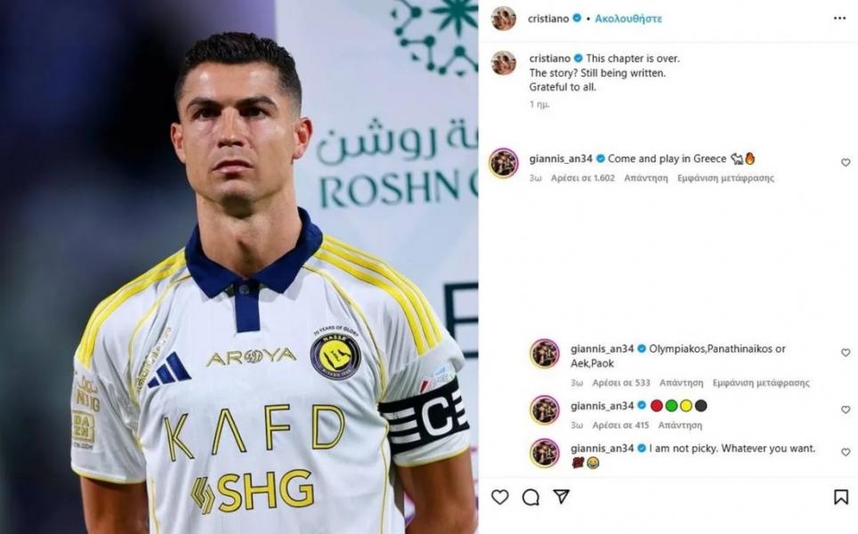 Με σχόλιό του κάτω από την ανάρτηση του Πορτογάλου σούπερ σταρ στα social media, ο «Greek Freak» τον κάλεσε ανοιχτά να έρθει στην Ελλάδα και να συνεχίσει εδώ την καριέρα του.