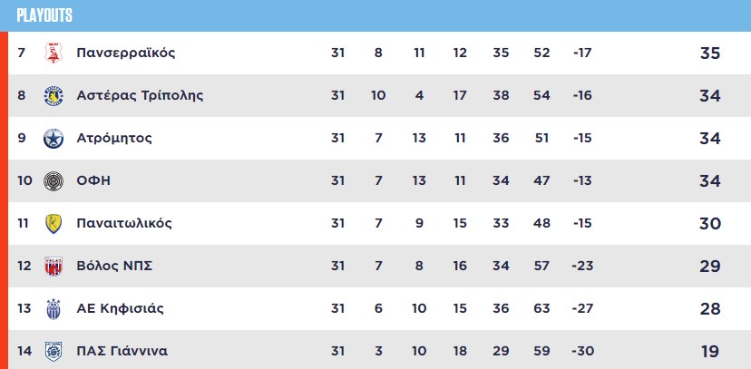 Η ήττα του Βόλου από τον ΟΦΗ και οι νίκες των Παναιτωλικού και Κηφισιάς εις βάρος των Αστέρα Τρίπολης και Ατρόμητου αντίστοιχα άλλαξε και πάλι τις… ισορροπίες όσον αφορά την υπόθεση παραμονής στην Stoiximan Super League.
