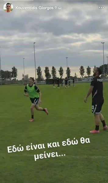 Με αφορμή τα σενάρια που κυκλοφορούν για το μέλλον του, ο Διευθυντής Επικοινωνίας της «ασπρόμαυρης» ΠΑΕ, Γιώργος Κουβεντίδης, έστειλε ηχηρό μήνυμα στήριξης και ξεκάθαρης θέσης, δημοσιεύοντας φωτογραφία του Κωνσταντέλια από την προπόνηση, συνοδευόμενη από τη φράση: «Εδώ είναι και εδώ θα μείνει».