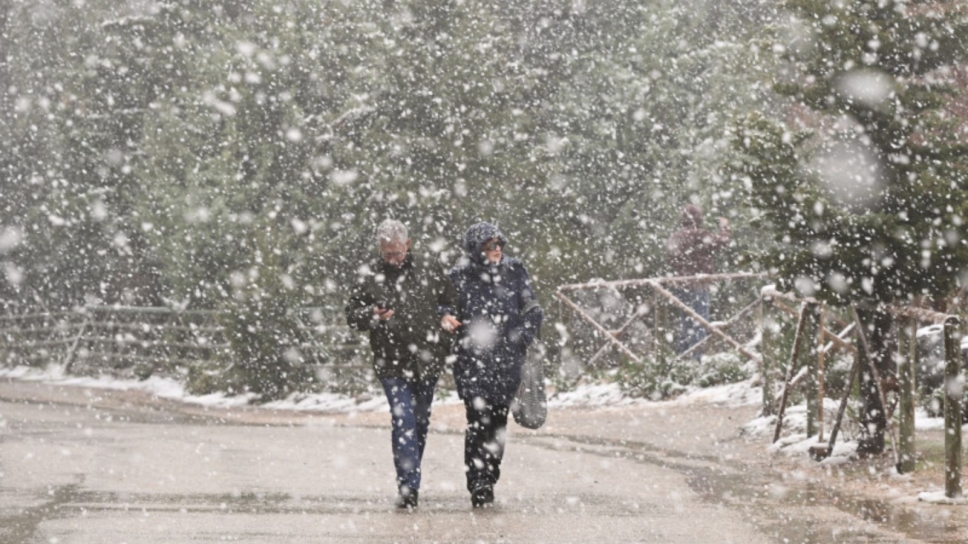 Λόγω της χιονόπτωσης έχει διακοπεί η κυκλοφορία στη λεωφόρο Πάρνηθος, από το ύψος του τελεφερίκ
