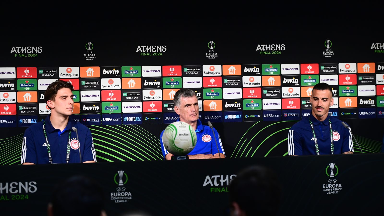 Αυτή την ώρα βρίσκεται σε εξέλιξη η συνέντευξη Τύπου της ΠΑΕ Ολυμπιακός ενόψει του τελικού του Conference League απέναντι στην Φιορεντίνα.