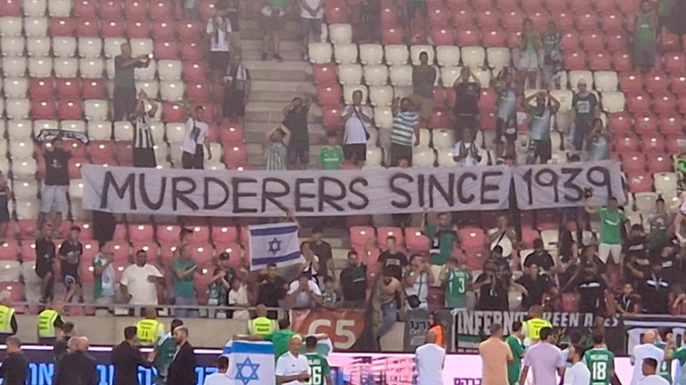 σραηλινοί οπαδοί ανάρτησαν πανό με το μήνυμα «Δολοφόνοι από το 1939» στο ματς της Μακάμπι Χάιφα με τη Ρακόφ