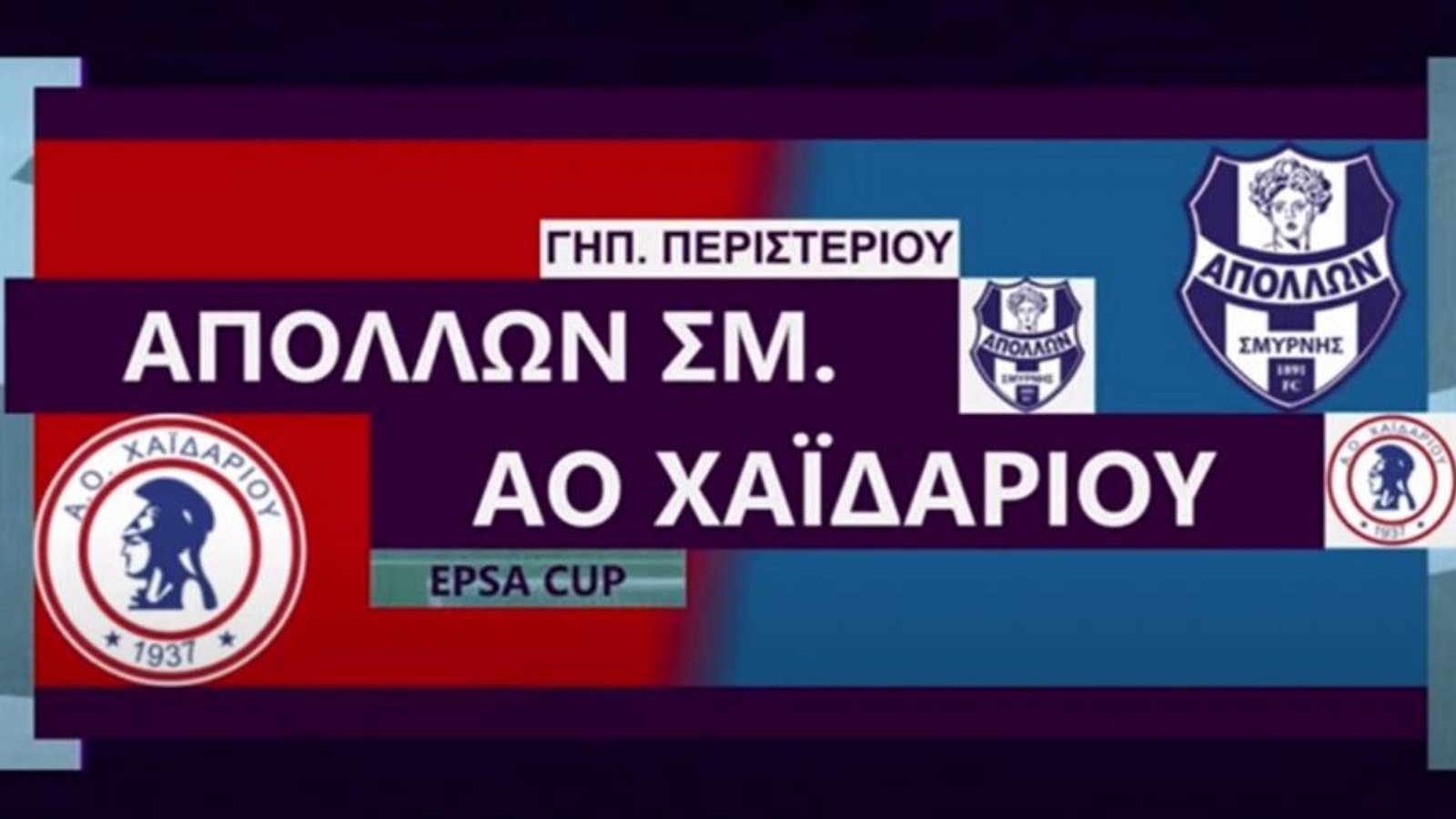 Σήμερα (9/4) το απόγευμα (18:30) ο Απόλλων Σμύρνης και ο ΑΟ Χαϊδαρίου «διασταυρώνουν τα ξίφη τους» στο δημοτικό στάδιο Περιστερίου με σκοπό την κατάκτηση του τροπαίου για δεύτερη φορά στην ιστορία τους.