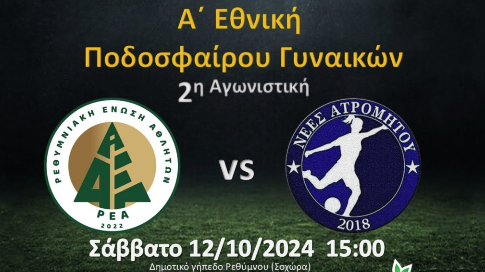 Τις νέες Ατρομήτου υποδέχεται σήμερα ο ΑΟ ΡΕΑ στο γήπεδο της Σοχώρας στις 15.00 το κεντρικό γήπεδο του Ρεθύμνου θα έχει την ευκαιρία να υποδεχθεί και τους φίλους του γυναικείου ποδοσφαίρου.
