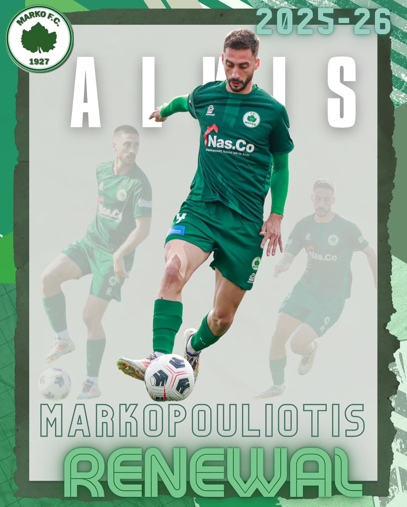 Ανανεώσεων συνέχεια για τη Μαρκό. Μετά τους Μπάμπη Παυλίδη και Μανώλη Καλλέργη, ακόμα μια έμπειρη μονάδα, που διαδραμάτισε πρωταγωνιστικό ρόλο στην ιστορική πορεία ανόδου στη Super League 2, παραμένει στην ομάδα του Μαρκόπουλου.