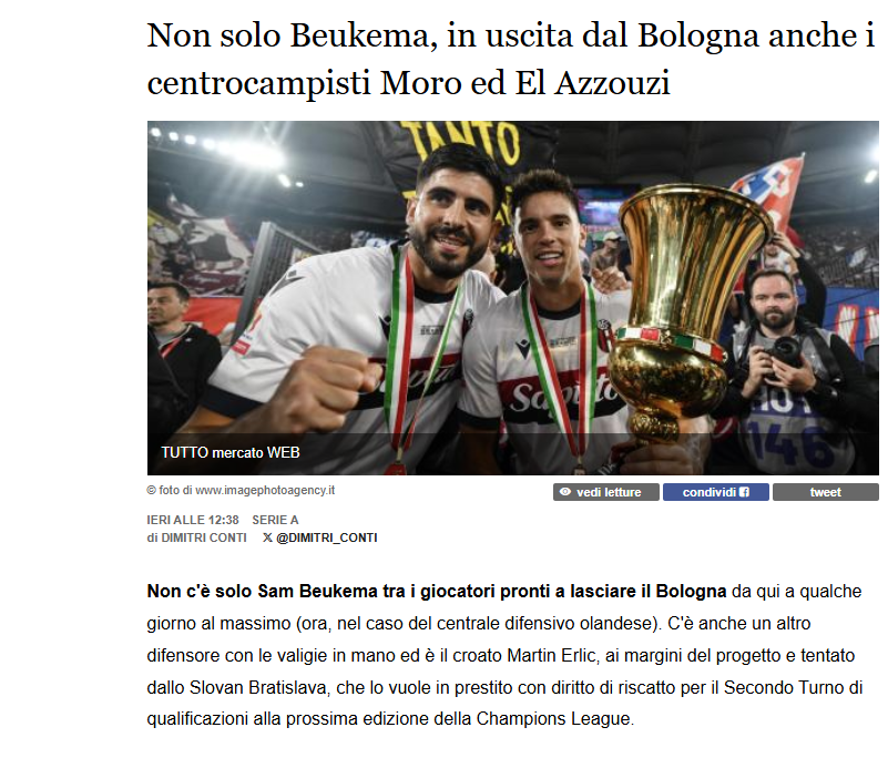 Σε ένα σημείο του ιταλικού ρεπορτάζ, αναφέρεται μεταξύ άλλων: «Εν τω μεταξύ, δύο κεντρικοί μέσοι που δεν έχουν αξιοποιηθεί επαρκώς τους τελευταίους μήνες φεύγουν από την Μπολόνια, συμπεριλαμβανομένου του Κροάτη Νικόλα Μόρο, ο οποίος είναι κοντά στην ένταξή του στην ελληνική ΑΕΚ, και του Μαροκινού Ουσάμα Ελ Ατσούζι, τον οποίο έχει βάλει στο μάτι η Οσέρ στη Γαλλία».
