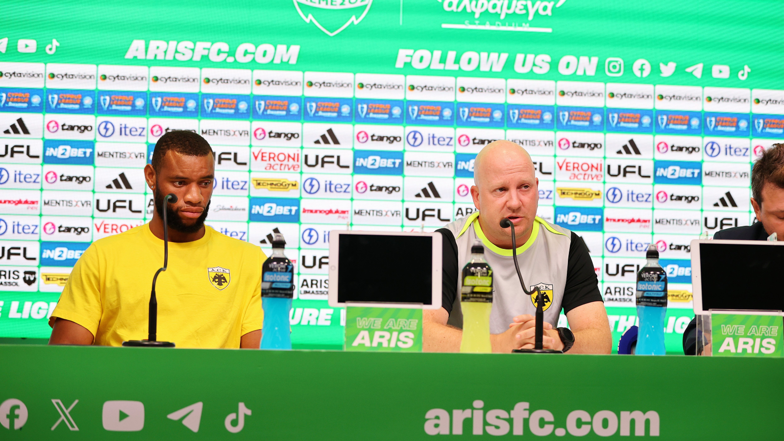 Για το αν έχει μελετήσει τις επιθετικές αρετές του Άρη Λεμεσού και ποιους παίκτες πρέπει να προσέξει η ΑΕΚ: «Πάντα προετοιμαζόμαστε για κάθε αντίπαλο. Έχουν ποιότητα και ταχύτητα στα άκρα. Η δουλειά που κάνουμε καθημερινά είναι αυτή που μας οδηγεί συν κάποιες προσαρμογές στον αντίπαλο».