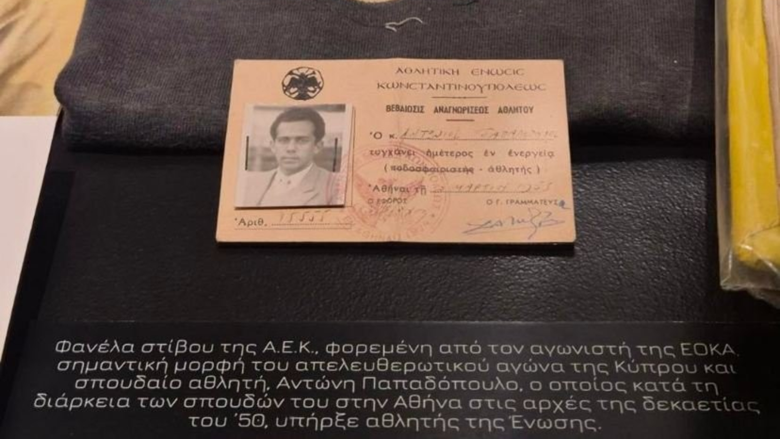 Όσοι έρθουν στο επόμενο διάστημα θα έχουν την ευκαιρία να θαυμάσουν δεκάδες νέα εκθέματα που προστέθηκαν πρόσφατα στις προθήκες του, όπως τη φανέλα και ταυτότητα αθλητή της ΑΕΚ του Κυπρίου αγωνιστή και ήρωα Αντώνη Παπαδόπουλου, αναμνηστικά από διεθνείς αγώνες που έδωσε η Ένωση εναντίον της Ρεάλ, της Ίντερ, της Μίλαν κ.ά. καθώς και πλήθος άλλων εκθεμάτων.