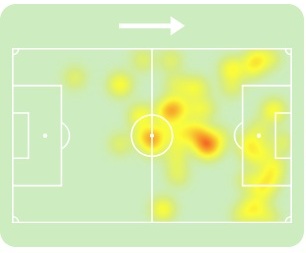 Ο χάρτης κινήσεών του αποδεικνύει τη διάθεσή του: στον άξονα, στα άκρα, κοντά στην περιοχή αλλά και βαθιά για να οργανώσει το παιχνίδι. Ήταν ο παίκτης που γέμιζε συνεχώς τα κενά και έδινε λύσεις όπου χρειαζόταν.